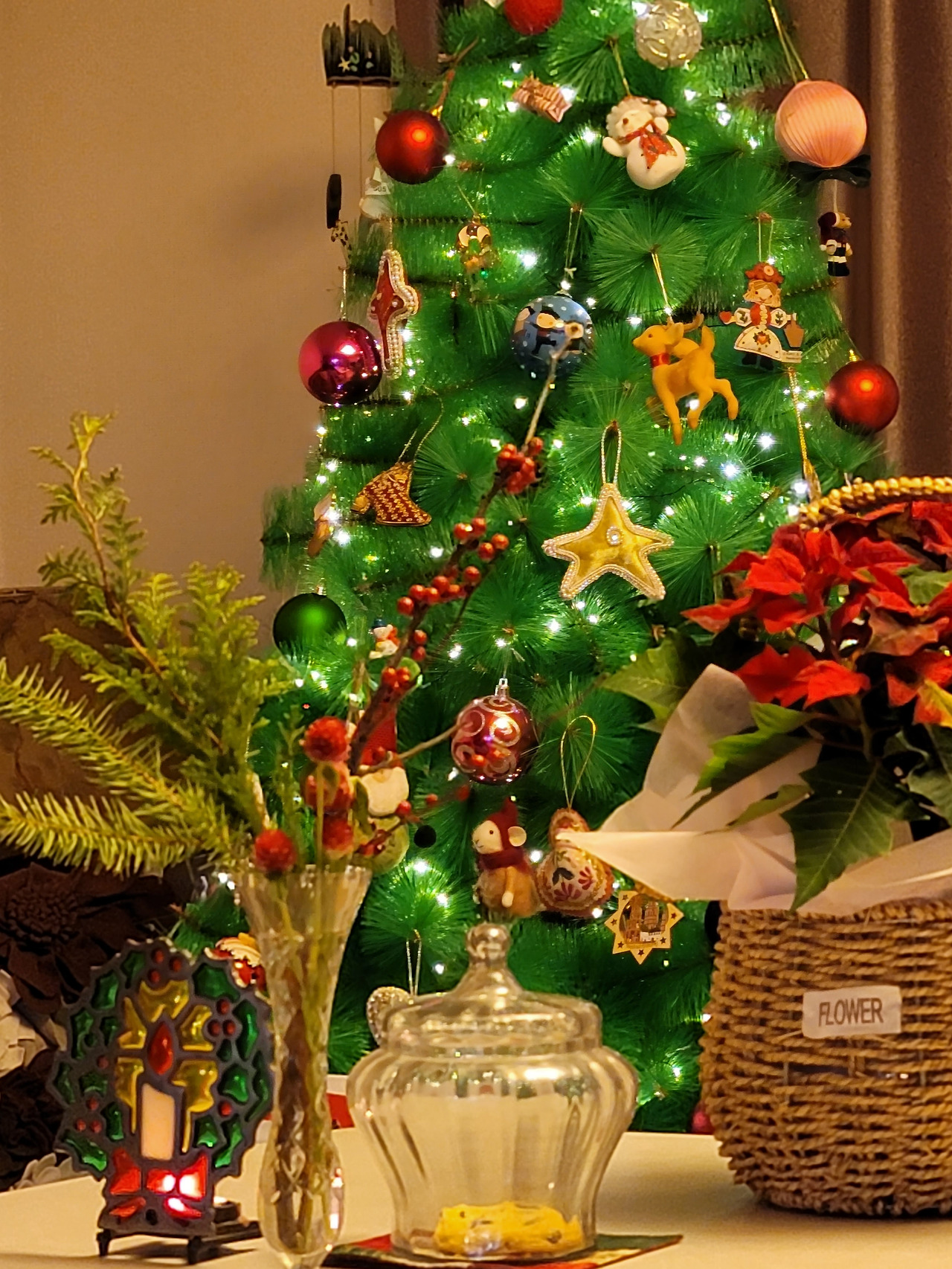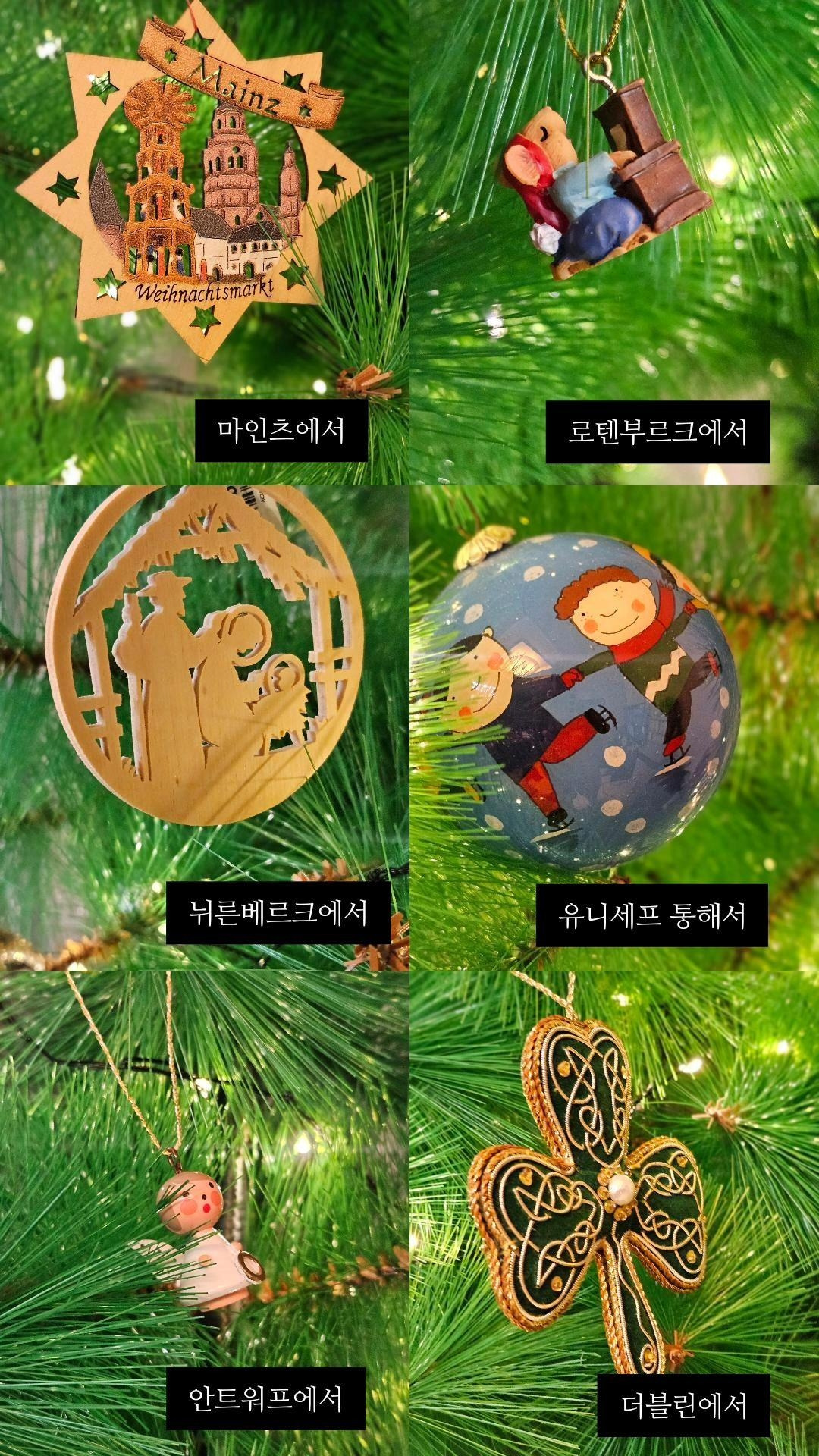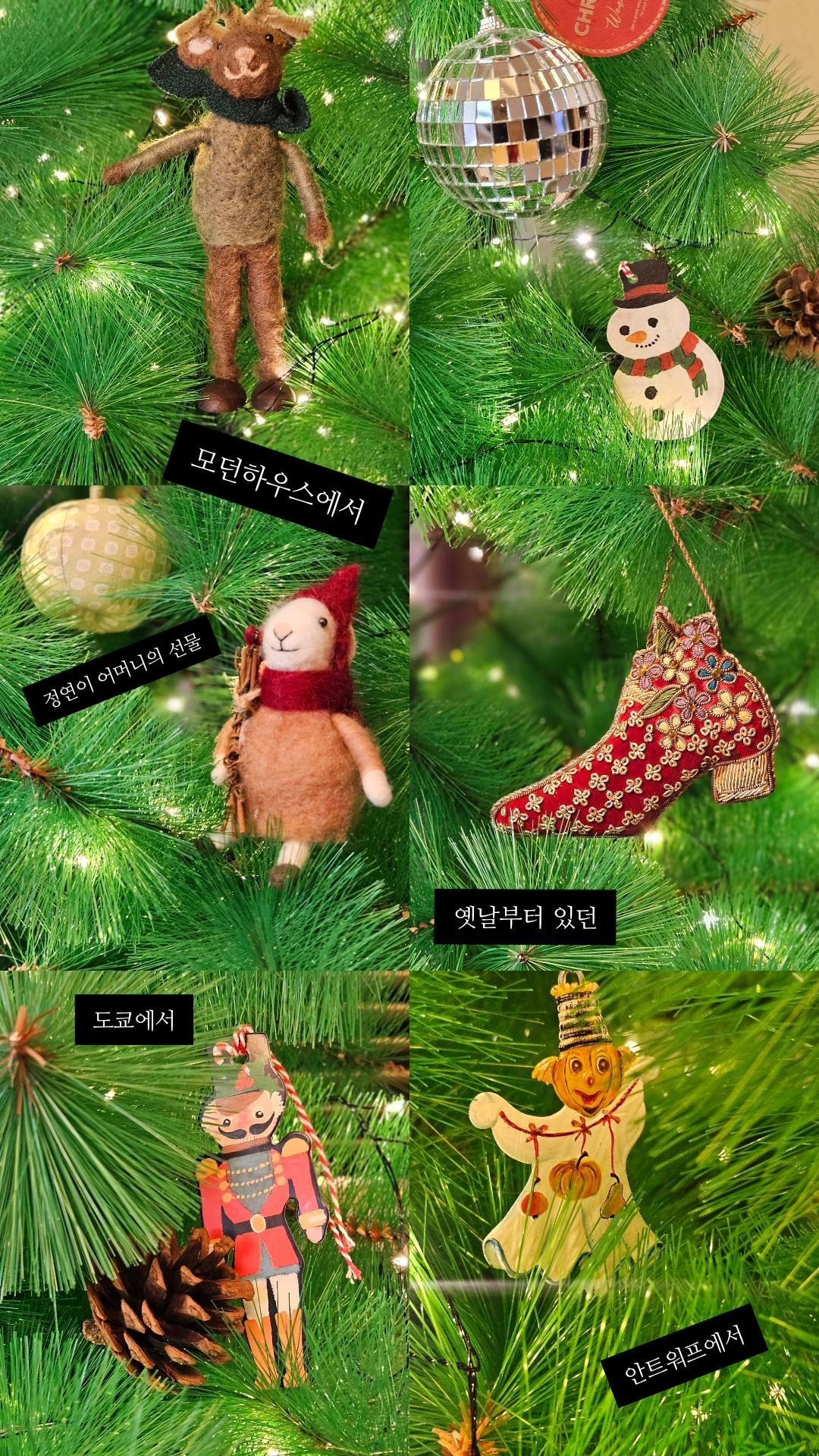 소녀와 소녀, 산타 할아버지, 동그랗고 매끈한 볼, 황금빛 종, 나팔 부는 천사, 십자가, 말구유에 놓인 아기 예수님의 모습, 어느 관광지의 모뉴먼트가 그려진 장식, 꽃, 화려한 장식의 구두, 복슬복슬한 순록과 생쥐, 호두까기 인형, 붉은색 양말, 장난스러운 표정의 광대, 눈사람, 진저브래드맨, 피아노 치는 생쥐, 자수가 돋보이는 세잎클로버, 어린이의 그림이 그려진 볼... 우리 집 트리 가까이에 서서 오너먼트를 살피면 동화책을 여러 권 읽은 듯했다.