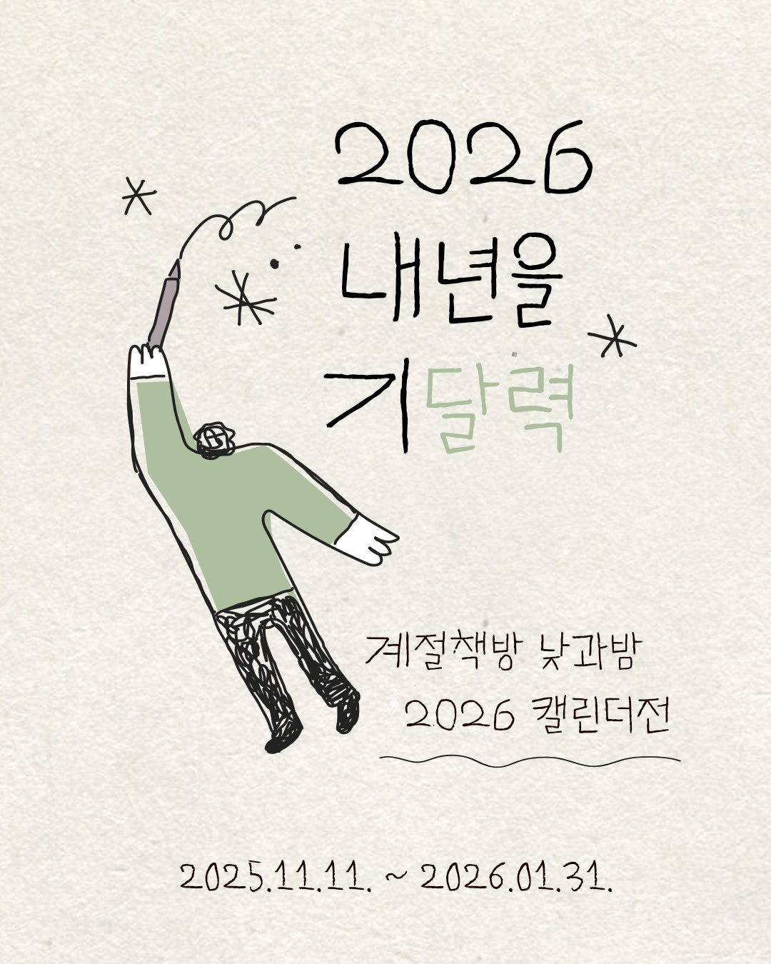 언제든지 곁에 시와 사진을 두고 싶은 분들이 있다면 계절책방 낮과 밤을 찾아주세요. 캘린더전은 26년 1월 31일까지 계속됩니다.