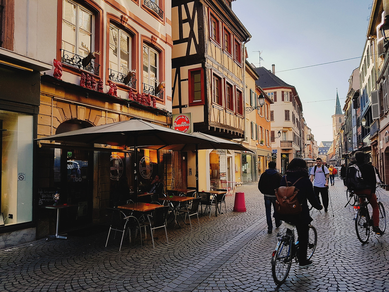 카페 타임을 마친 우리는 스트라스부르의 전통 생강빵과 쿠겔 호프(Kugelhof: 가운데에 구멍이 있는 산맥 모양의 빵), 각종 간식들을 구경하면서 거리를 누볐다. 특히나 생강빵 전문 가게에 들려 불어로 이것저것 물어보면서 시식을 잠깐 하기도 했다. 잠깐 시식을 한다고 가게에 머무르는 사이 옷 사이사이에 생강 향이 진하게 배었는지 그 가게를 나온 이후 걸을 때마다 옅어져만 옷깃에서 생강의 흔적이 맡아졌다(?).