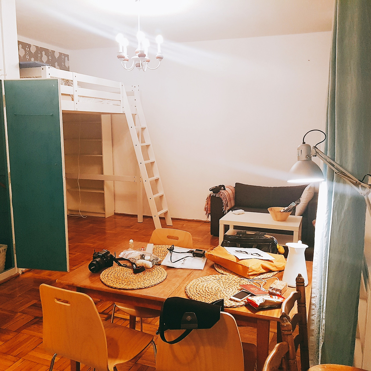 바르샤바 에어비엔비 숙소의 풍경. 1층 침대 없는 2층 침대에 누우려면 저 가파른 사다리를 올라야 한다.