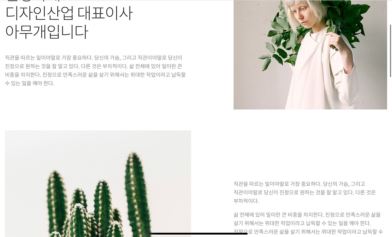 사업 소개 및 기술 소개에는 사진 / 글을 지그재그 식으로 배치할 계획이다. 아래는 샘플 사이트에서 가져온 이미지인데, 내가 그리던 방향과 정확히 일치한다. 여기에 넣을 각각의 사진과 그에 맞는 글을 작성해야 한다.