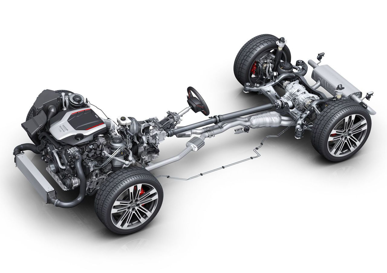 반대로 아우디는 사륜 혹은 전륜 기반의 차량이다. 그렇기 때문에 앞에서 말한 벤츠나 BMW와는 달리 실제로 주행성이나 스포츠성에 있어서 구조적으로 유리하지 못한 것이 사실이다. 특히 아우디가 사용하는 구조는 특성상 엔진을 상당히 보닛 앞쪽으로 배치해야 하는데, 이럴 경우 앞 오버행이 길어질 수밖에 없다. 따라서 구조적인 이유로 디자인이 대중 브랜드들의 전륜 기반 차량들과 근본적인 차이를 만들기는 어렵다. 한 마디로 말해서 스포티한 디자인을 만들기 상당히 불리한 구조라는 것이다.