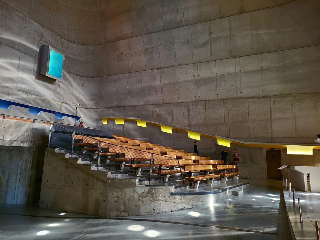 건물의 외벽은 그 자체로 구조체 역할을 하고 있었기 때문에, 내부는 건물의 형태를 솔직하게 따르고 있었다. 놀라운 것은 이렇게 콘크리트로 되어있는 외골격의 구조가 마치 한 번에 틀에 넣고 만든 것처럼 일체감 있게 느껴진다는 점이었다. 비행기의 모노코크 구조처럼 내부에 별도의 기둥과 같은 요소 없이 외벽이 그 자체로 서 있는 것이었다.