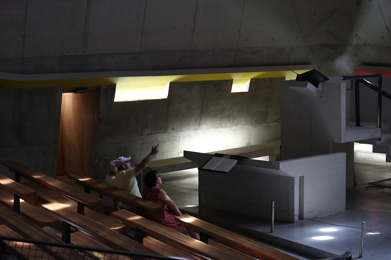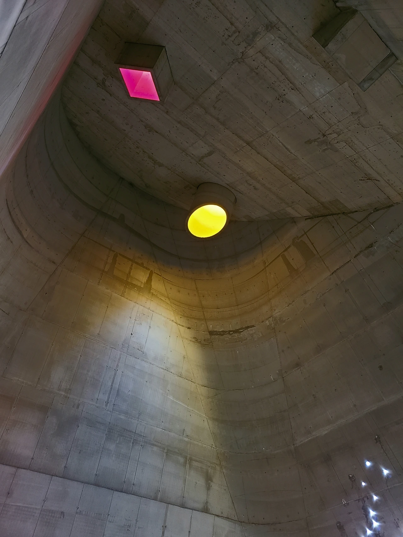 이렇게 통으로 콘크리트로 덮여있는 공간에 빛을 들이기 위해 여러 장치들을 적용한 것을 볼 수 있었다. 남쪽으로부터 별빛 같은 빛을 들이는 구멍들 뿐만 아니라 천장과 벽에 설치된 일종의 빛의 대포들도 있었고, 벽면을 따라 이어지는 간접광의 띠도 있었다. 르 코르뷔지에 특유의 이러한 장치들은 어두운 공간 속에서 약한 빛 만으로도 강한 인상을 남긴다.외관에서 보았던 괴상한 장치들은 모두 이렇게 내부에 빛을 들이기 위한 장치들이었다.