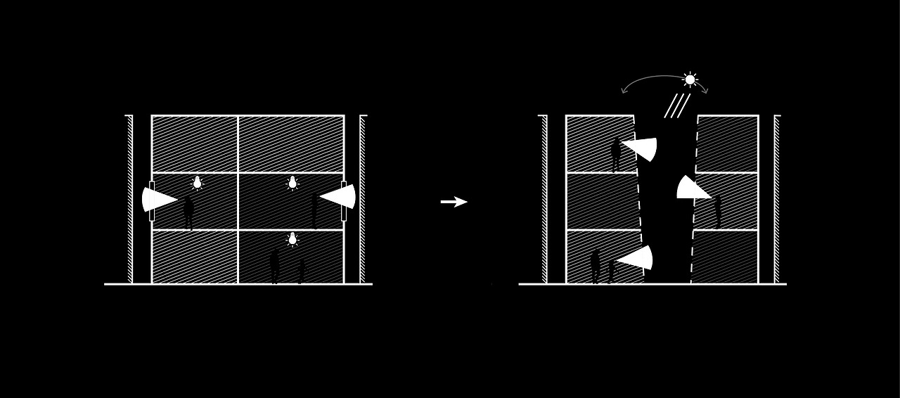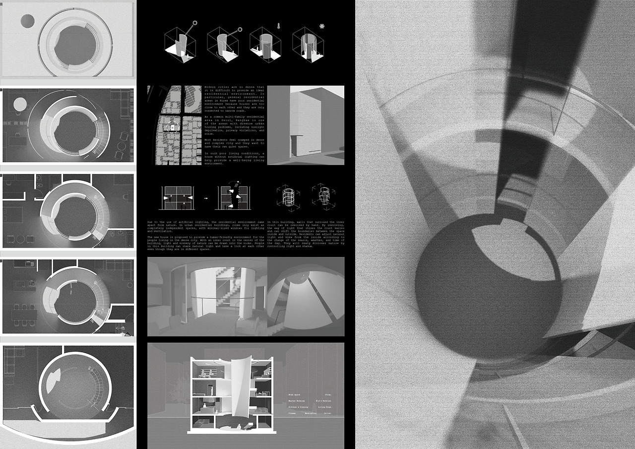 나아가 이 빈 공간을 통해 각각의 공간을 밝히는 것뿐만 아니라 사람들이 서로를 인식하도록 할 수 있지 않을까 생각했다. 보이드를 통해 사람들은 날마다 그날의 하늘과 날씨를 인식하고, 보이드 건너편에 있는, 함께 그 빛을 공유하는 가족들을 보게 될 것이다.