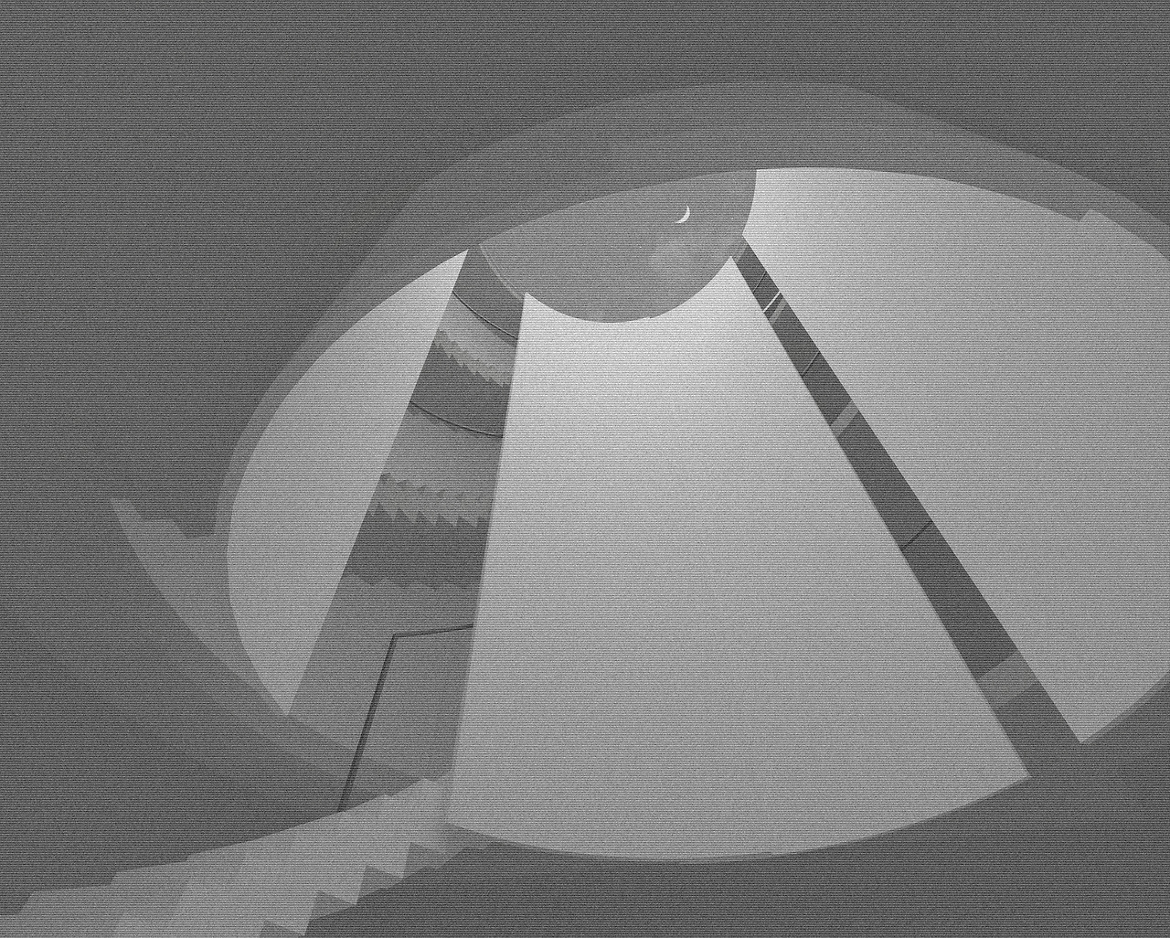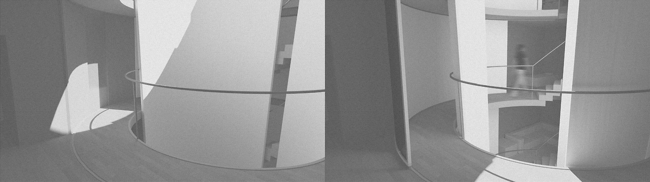 그래서 도입한 장치가 회전시킬 수 있는 벽이다. 여기서의 회전은 문의 힌지를 중심으로 회전 rotate 하는 것이 아니라 원형 보이드를 중심으로 회전 revolve 하는 벽을 말한다. 이 벽은 마치 슬라이딩도어처럼 열리고 닫히면서 닫혀있을 때는 벽이 되고, 열려있을 때는 빛을 들이는 창의 역할을 한다. 벽인 동시에 창이고, 또 문이 되는 장치이다.
