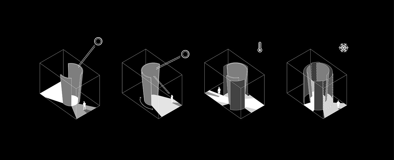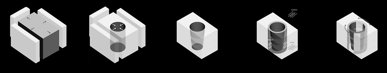 처음에는 단순히 빛이 들어오는 구멍을 뚫고, 빛이 들어오는 것에 따라 사람들이 수동적으로 생활하게 하면 될 것이라 생각했었는데, 어딘가 뻔하기도 하고 도를 닦는 사람처럼 살아가는 것이 자연과 가까워지는 것은 아니라는 생각이 들었다. 그래서 거주자가 자연광을 능동적으로 활용하도록 하는 것도 자연을 계속 인식하게 하는 행위가 될 수 있지 않을까 생각했다.