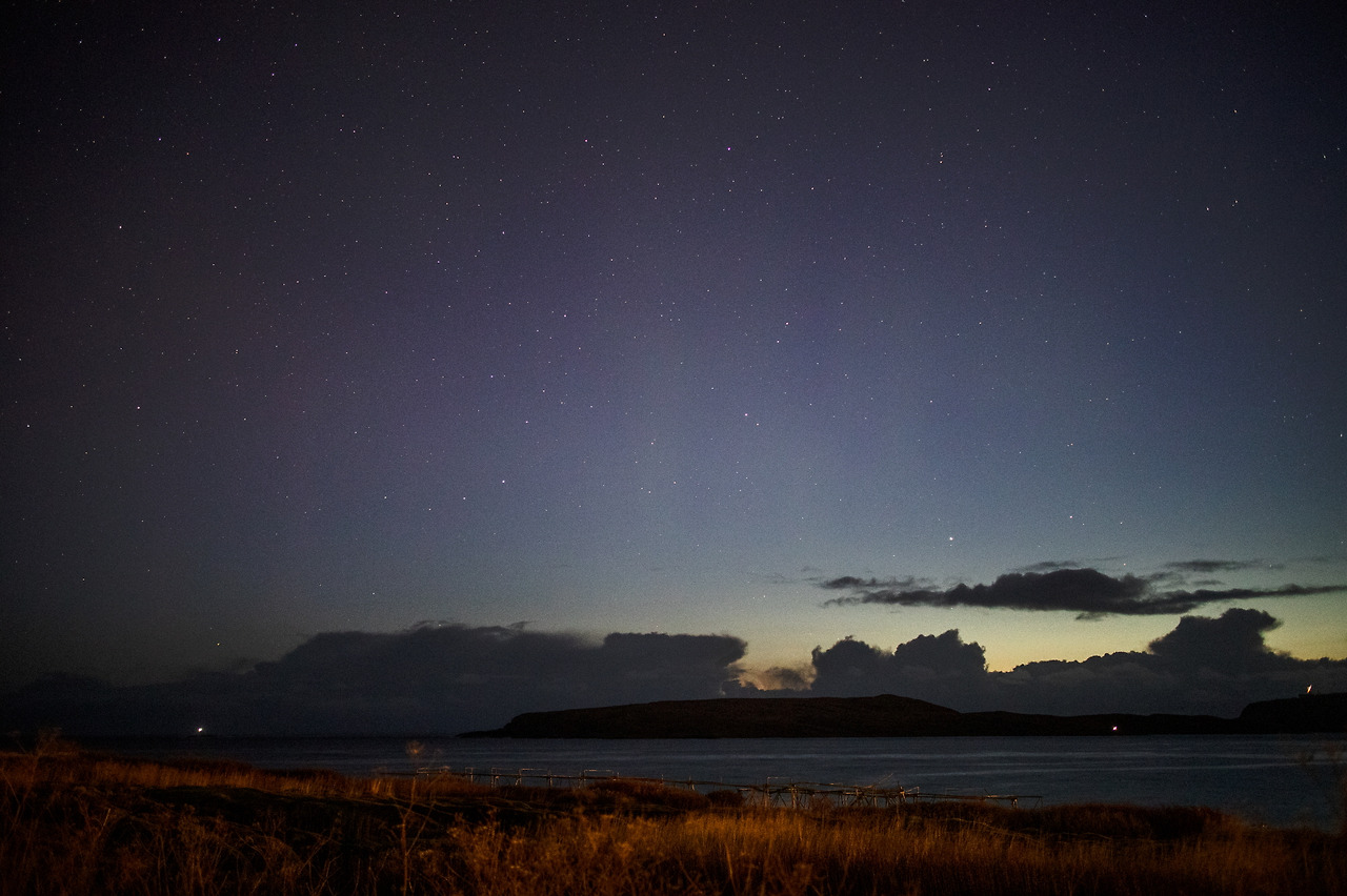 이곳은 극지방인지라 10월임에도 해가 정말 짧았다. 오후 4시쯤부터 하늘이 어두워지기 시작했다. 그리고 밤이 되면 북극권 특유의 극광 같은 것들이 보였다. 어두운 곳에 가니 희미한 오로라도 볼 수 있었고, 특이하게도 한밤중에도 북쪽 하늘은 동트기 전처럼 미약하게 밝아져 있었다. 아마 한겨울이 되어서 해가 완전히 뜨지 않을 때에는 이런 일종의 박명이 계속되는 상태이지 않을까 한다. 이곳에서 맑은 날 밤하늘을 하루밖에 못 본 것이 아쉽다.
