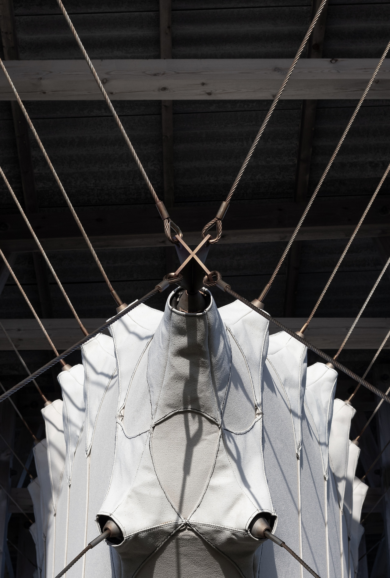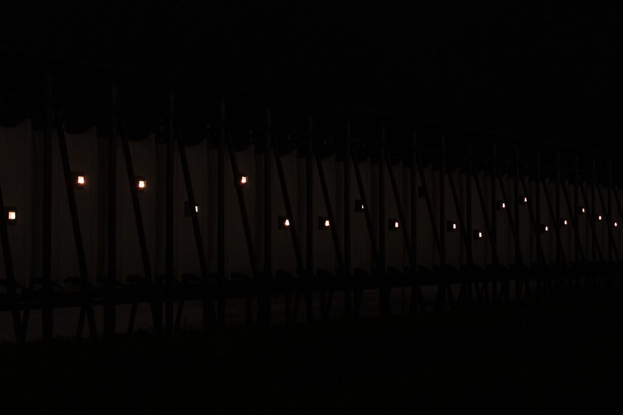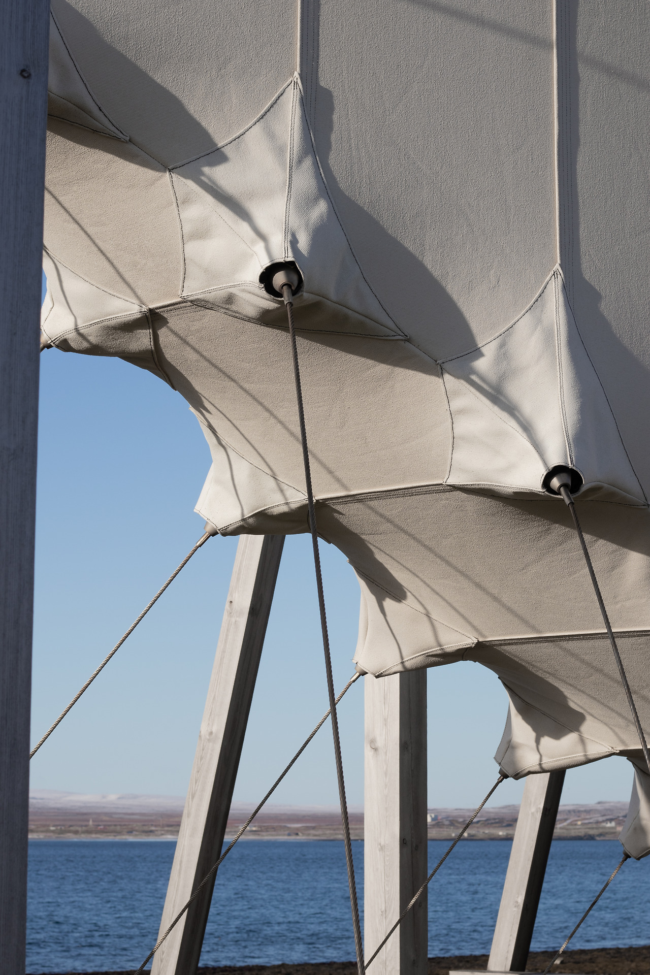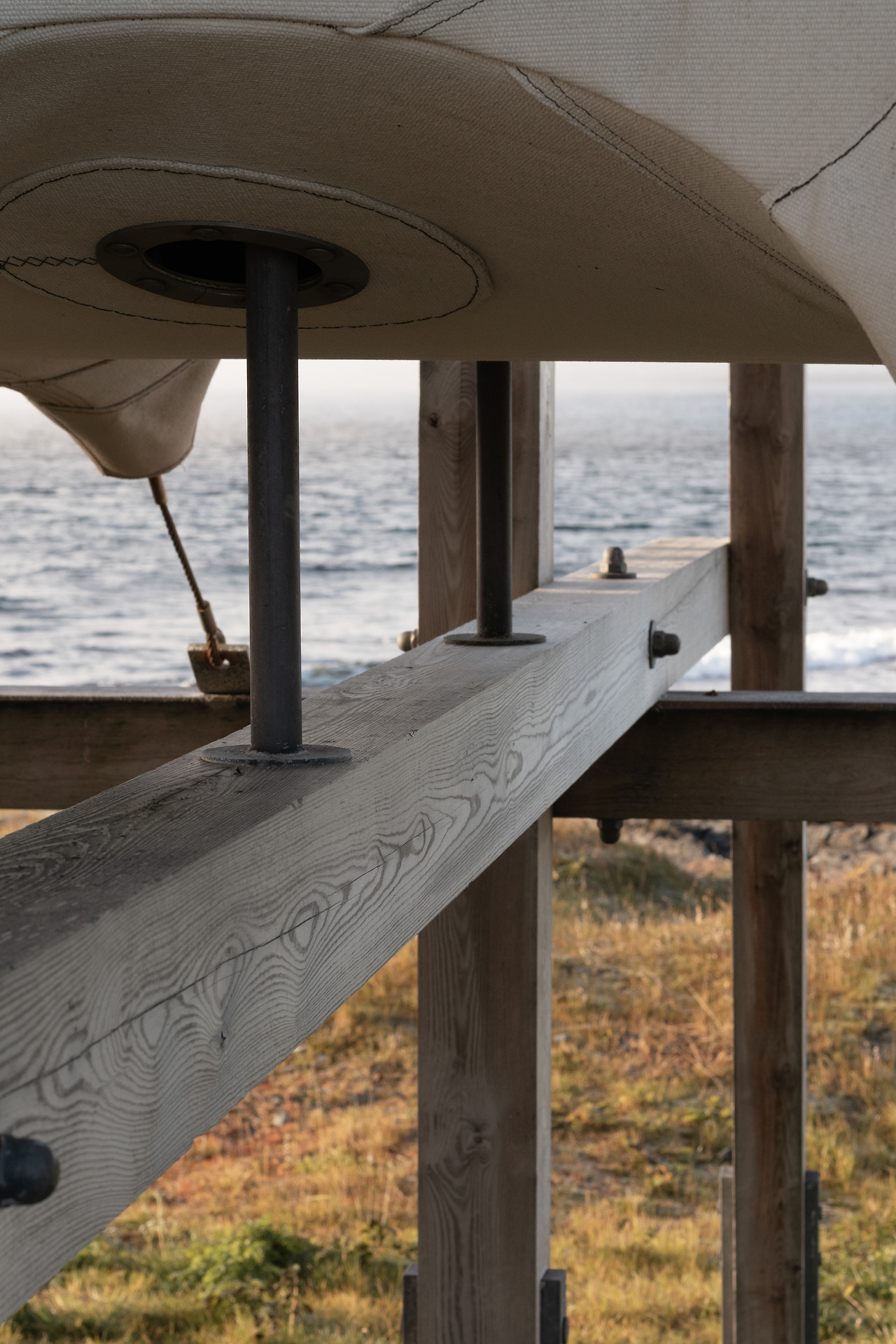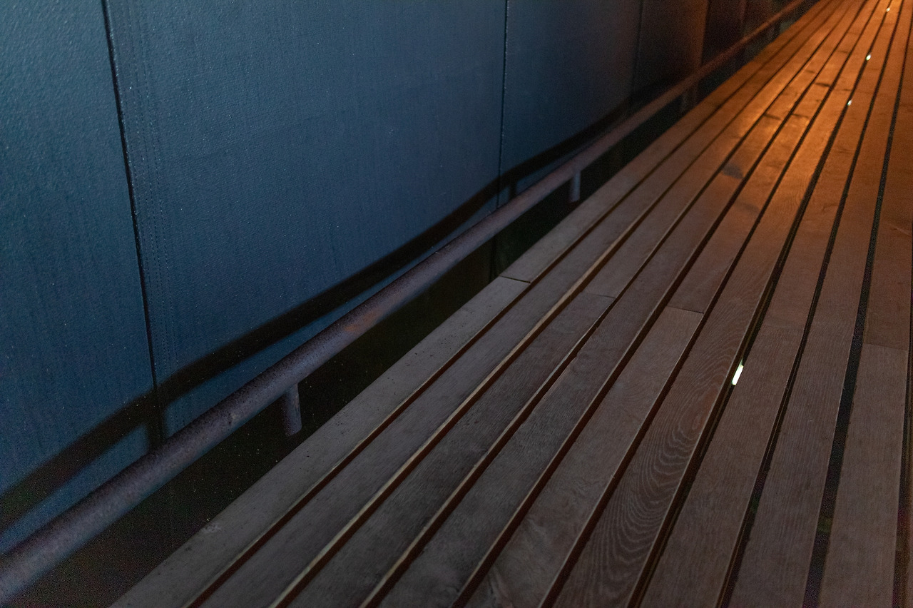 또한 이곳은 부재들의 고정방식들이 전부 드러나 있어서 어떻게 만들었는지를 대충 눈으로 보면 상상할 수 있었다. 예를 들면 내부공간의 바닥은 목재 데크로 되어 있었는데, 데크를 고정하기 위해 직물에 구멍을 뚫고 지지대를 올린 것도 재미있는 디테일이었다. 이런 식으로 직물을 사용하면서 생기는 문제들을 해결하는 디테일들도 이 메모리얼의 소소한 볼거리이다.