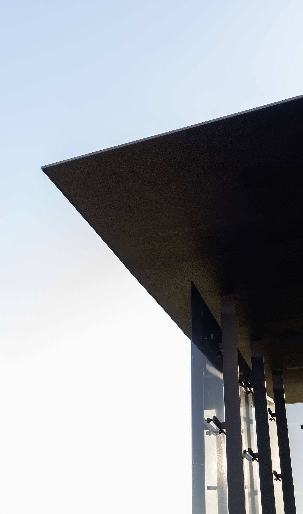 메모리얼의 두 번째 공간은 유리로 된 박스형태의 파빌리온이다. 어두운 색 유리로 벽을 만들었고, 그 내부에는 불이 나오고 있는 의자가 있었다. 스테일네셋 메모리얼은 춤토어와 예술가 루이즈 부르주아(Louise Bourgeois)가 협업해 만들었는데, 기다란 파빌리온은 춤토어의 아이디어고, 이 네모난 파빌리온은 부르주아의 아이디어였다고 한다.