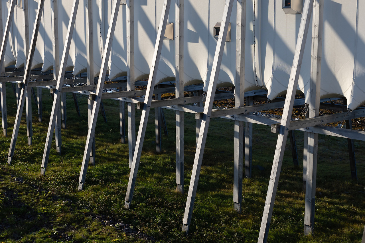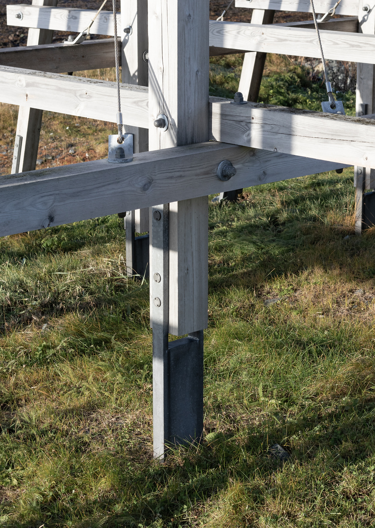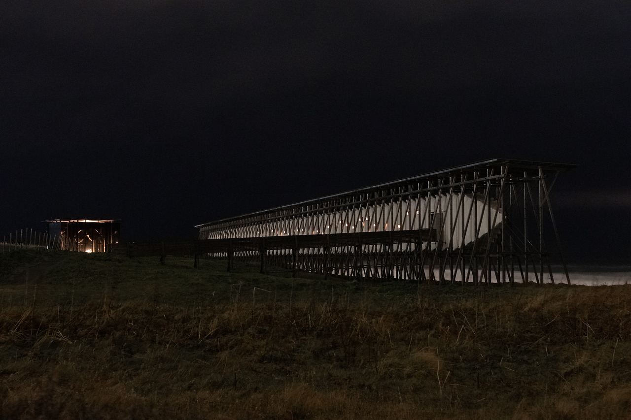 이 지역은 돌아다니다 보면 목재로 된 커다란 구조물들이 들판에 서 있는데, 생선을 말리기 위한 것이라고 한다. 대략 한 3~4미터 정도 높이로 꽤나 큰 구조물 자체도 참 범상치 않다. 아무튼 메모리얼의 재료와 형태에 있어서 저 생선을 말리는 건조대가 영감이 된 것으로 보인다.