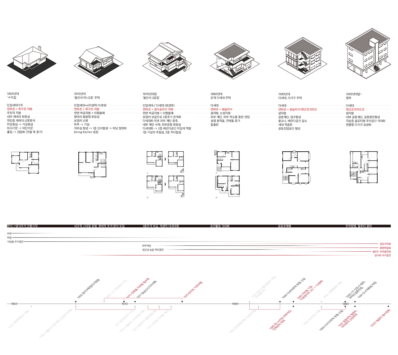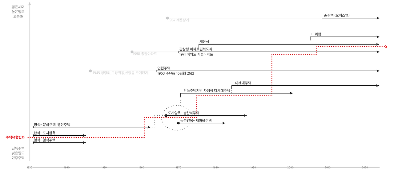 아파트가 아닌 저층주거에 대해 다루고자 했던 이유는, 이 주택들이 시대성과 장소성을 압축적으로 담고 있는 공간이었기 때문이었다. 한국이라는 지역의 경제성장기. 그 시간과 공간을 대표하는 주거형식이다. 전쟁이후 약 반세기동안 이 도시를 채우던 이 주택들에 대해 주목해보자.