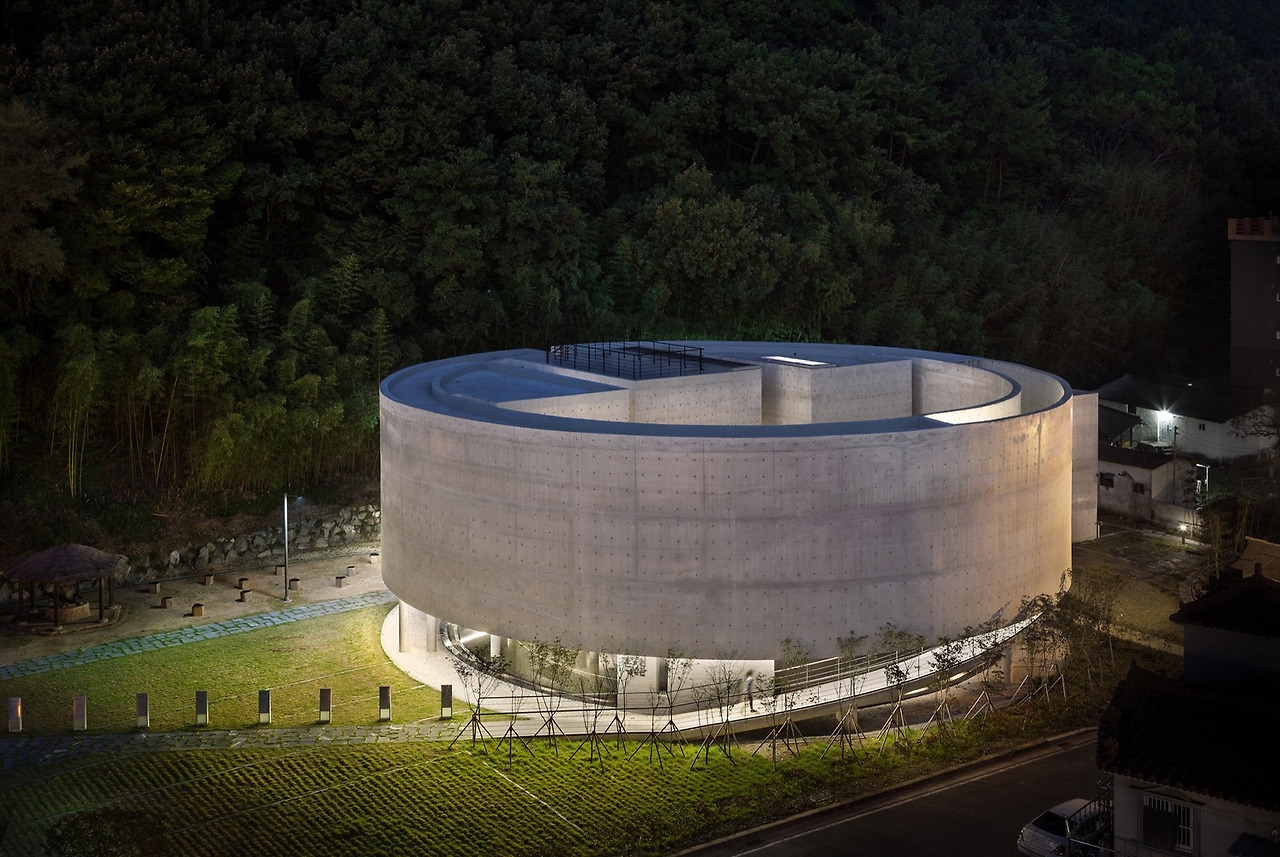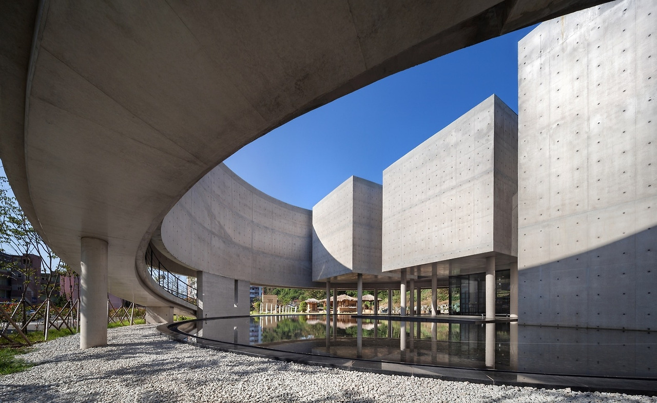 원형의 형태, 공중에 뜬 전시실이 내 아이디어와 같았다. 마치 안도의 건물 같은 기하학적인 형태, 물과 콘크리트, 자연광의 조화가 마음에 들었다. 처음에 생각한 내 건물은 이렇게 만들고 싶었다.
