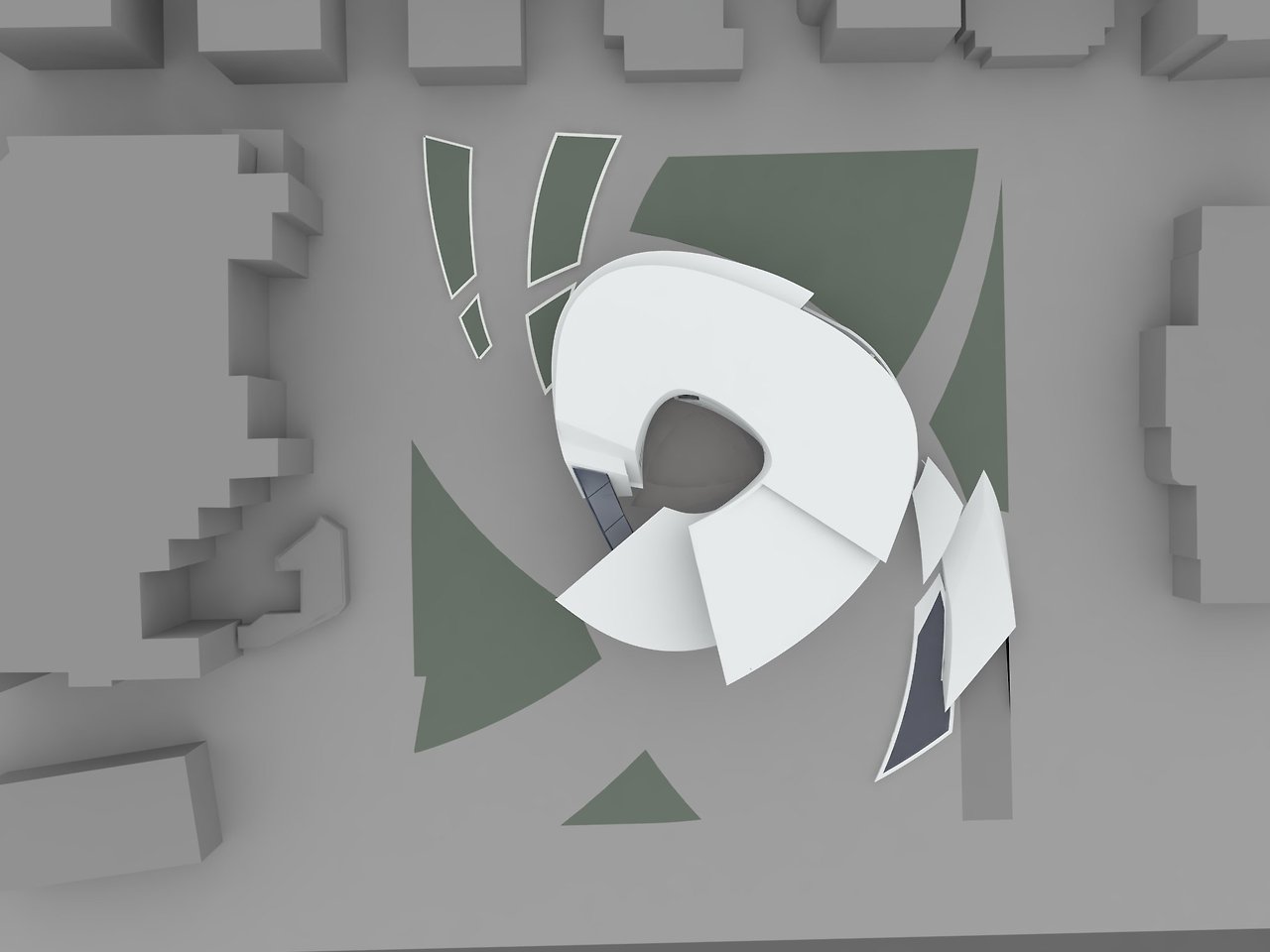 핵심은 건물을 ‘공중에 띄우는 것’이었다. 역시 건물이 떠있으면 시선을 끌기에 좋기도 하지만, 그것보다도 건물 아래의 공간을 그대로 공원의 일부로 사용할 수 있다는 것이 좋았다. 부족한 공원의 공간들을 마련하기 위해 건물을 지하로 모두 넣을 수도 있겠지만, 역시 그런 것보다는 공중에 떠 있는 좀 더 화려한 무언가를 만들고 싶었다. 어차피 돈은 무제한이니까.