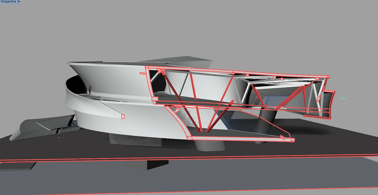 구조가 평가요소는 아니었지만, 그래도 계속 신경 쓰일 수밖에 없었다. 결론부터 말하자면, 이 건물이 구조적으로 해결 가능할지 내 수준에서는 도무지 알 수가 없었다. 트러스로 된 프레임도 만들어 봤는데 아마 현실에서 지어진다면 많은 부분이 바뀌어야 하지 않을까 싶다.