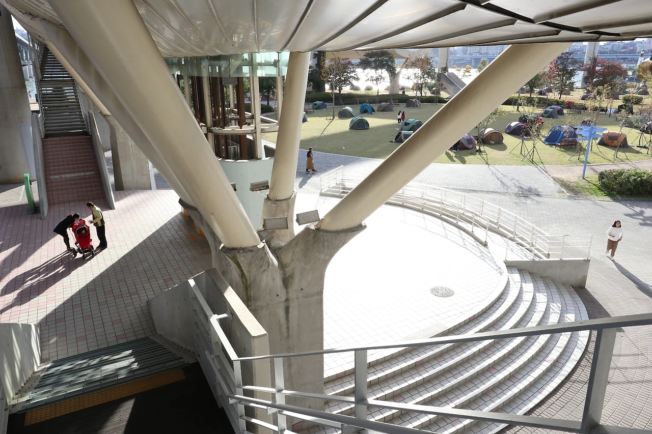 워낙 사방으로 유동인구가 정말 많은 사이트였다. 그래서 처음 건물을 구상할 때는 공원에서의 건물의 배치와 파사드를 어떻게 할지가 고민이었는데, 이렇게 원형으로 하다 보니 그런 고민들이 자연스럽게 해결이 되었다. 도넛 형태의 건물을 공원 중앙에 배치하면서 생기는 이점들이 많았다.