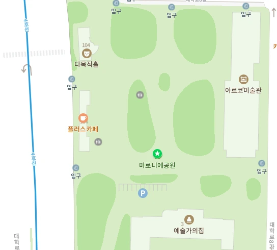 이 프로젝트의 사이트는 서울의 마로니에 공원이다. 과제는 현재 그곳에 있는 아르코미술관이 없다고 가정하고, 아르코를 대신할 미술관을 만드는 것이었다. 나는 마로니에 공원이 사람들이 모이는 ‘광장’의 역할을 하고 있고, 길거리 공연이 이루어진다는 점에 주목했다. 그래서 미술관 건물을 짓는다면 최대한 광장의 이러한 역할을 고려한 위치와 크기로 지어져야 한다고 생각했다.