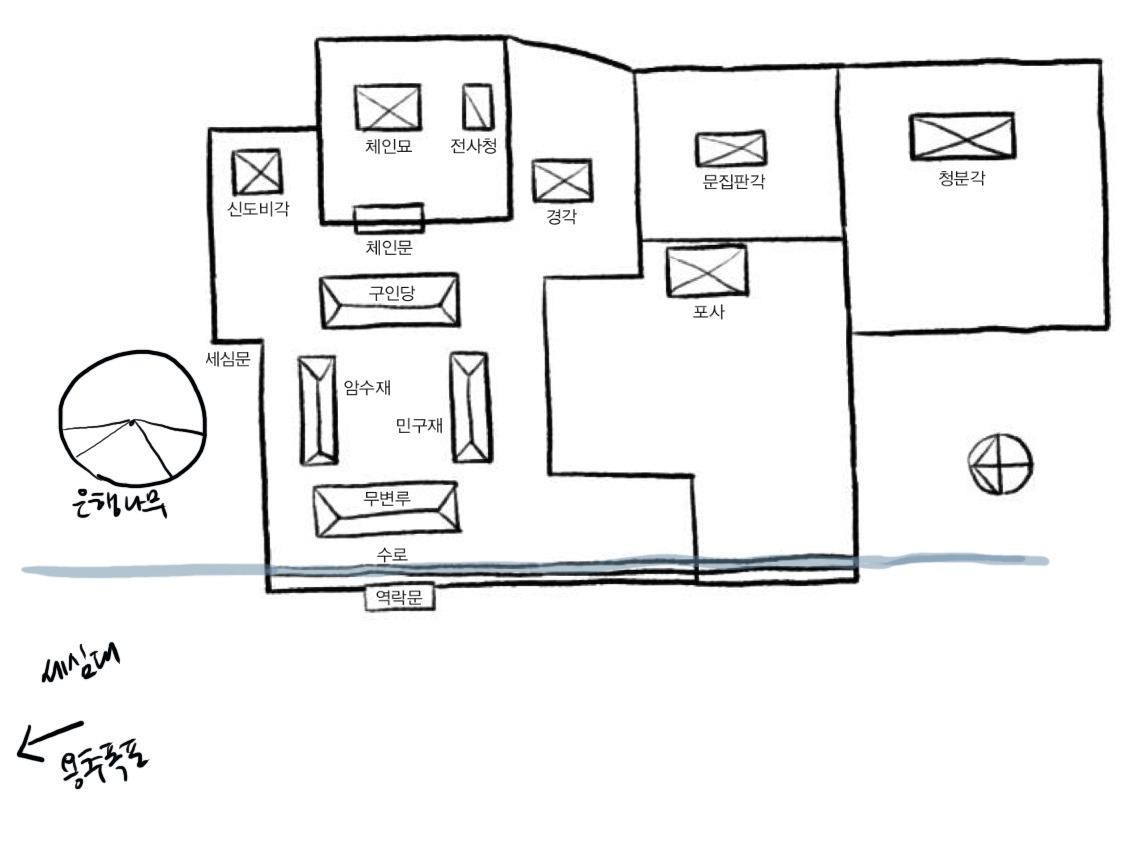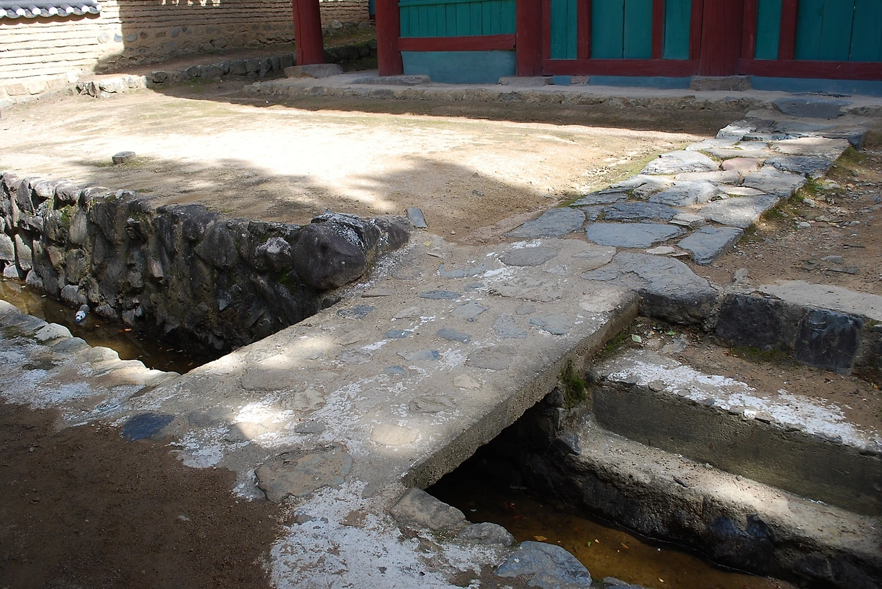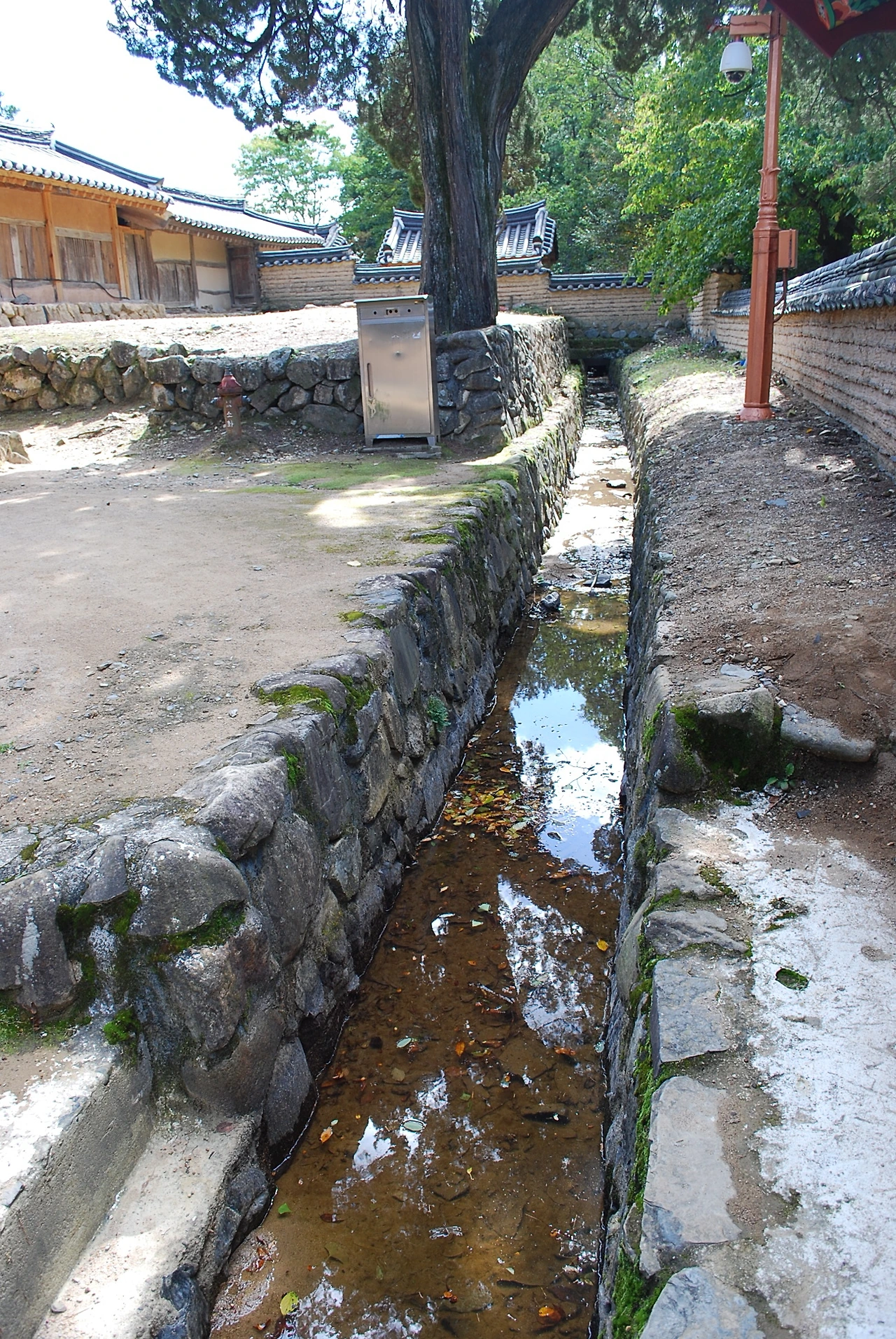 옥산서원의 독특한 점은 서원을 가로지르는 물길이다. 독락당 앞을 흐르는 물이 서원 안으로 들어가게 된 것은 특별한 상징성을 갖는다. 옥사정사에서 시작된 이언적의 가르침을 서원으로 이어간다는 의미, 그리고 자계에 이름 붙여진 이언적의 사상과 철학을 이어간다는 의미이다. 이러한 상징이 무색하게 지금 서원의 물길은 콘크리트 옹벽으로 자계와 분리되었다. 서원의 물길엔 쓰레기가 떠다니며, 이 물길을 건너는 다리는 회반죽에 옹졸한 돌을 몇 개 박아놓은 전통 양식과는 거리가 먼 모습이다. 어쩌다가 서원으로 이어지는 물길을 콘크리트 옹벽으로 막아버리고, 수로의 다리와 계단이 궁색해졌는지 알 수 없지만 유네스코 세계문화유산이 이렇게 관리되어도 되는지 부끄럽고 안타깝다.