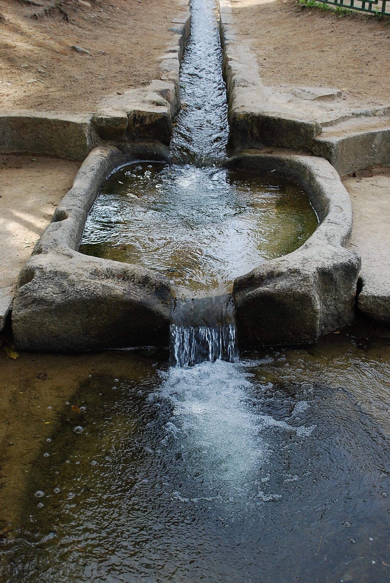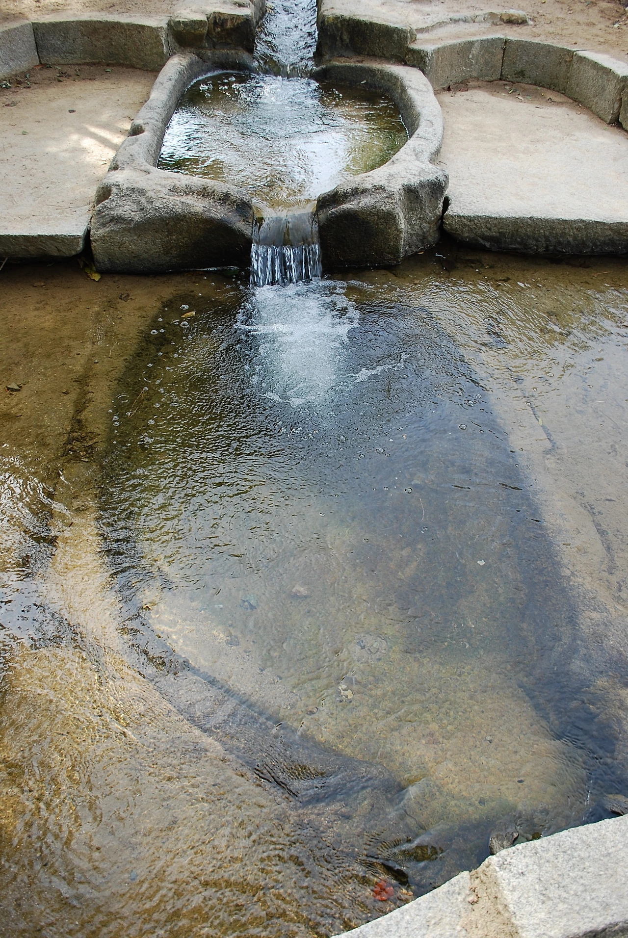 월지로 입수되는 물은 주술적 힘이 담겨 있다. 거대한 통돌을 동물의 뼈처럼 깎아놓은 두 단의 수조는 월지의 동남쪽에 있다. 윗 수조에는 지금은 없지만 아마도 용이나 거북이 머리가 끼워져 있었을 것 같은 홈이 파여 있다. 용의 입에서 나온 물은 아래 수조로 들어간 후 인위적으로 만든 계류를 지나 두 단의 폭포로 떨어진다. 이렇게나 큰 수조를 하나의 돌로 만들 수 있는 신라인의 기술이 놀랍다. 물속에 잠겨 있는 수조를 자세히 보면 큰 돌판에 U자 형태의 통돌이 두 겹으로 겹쳐있는 것을 볼 수 있다. 돌과 돌의 얼개를 맞춰 끼우는 형식은 분황사의 기단, 불국사의 석단에서도 볼 수 있는 신라 고유의 기법이다. 신라인들이 얼마나 돌을 자유자재로 깎을 수 있었는지 경주의 곳곳에서 느낄 수 있다.