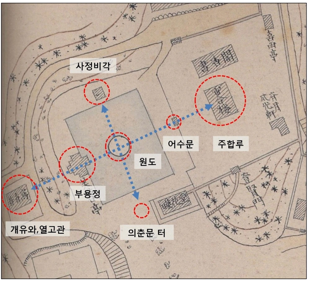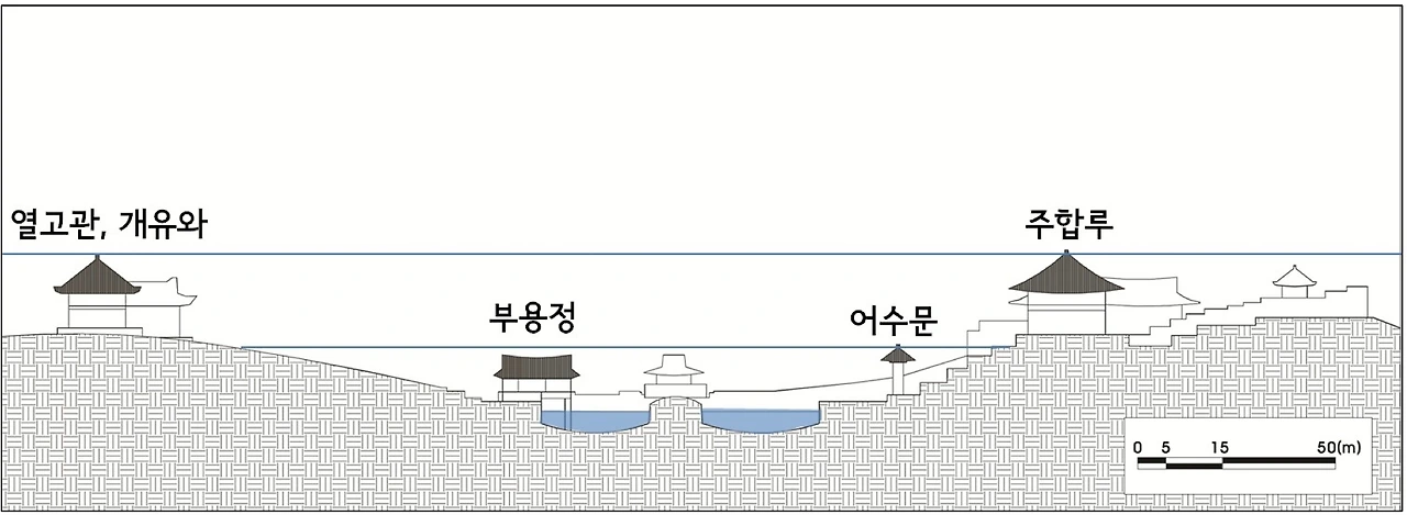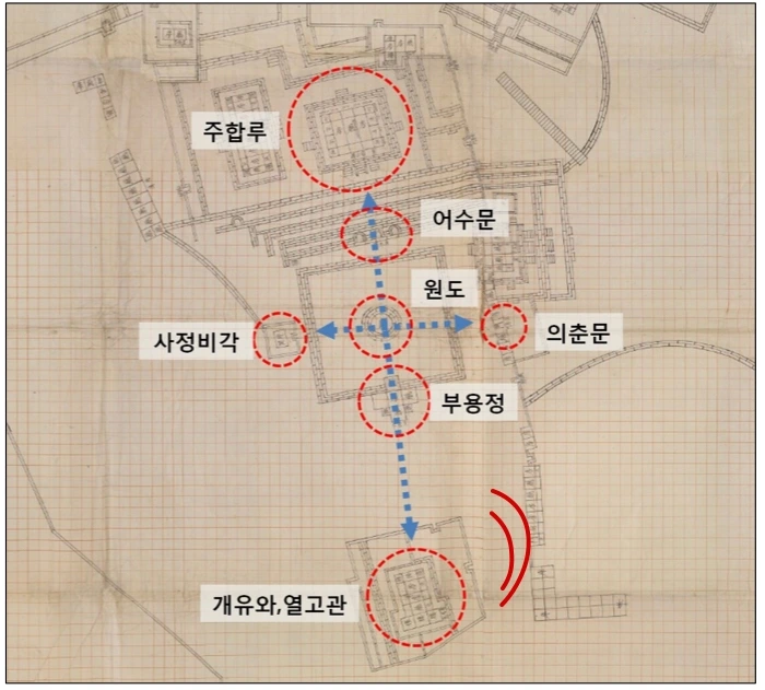 주합루에서 시작된 강한 축선은 부용정에서 끝나지 않고 열고관과 개유와로 이어진다. 세손 시절, 이 모든 것들을 계획하고 생각해 낸 곳이다. 정조는 주합루 맞은편, 열고관과 개유와를 바라보며 홀로였던 지난날을 떠올렸을 것이다. 이제는 더 이상 혼자가 아니라 유능한 신하들과 함께다. 힘들고 지칠 때면 주합루에 올라 자신이 완성한 정원과 맞은편 세손 시절 도서관을 바라보며 마음을 다잡았을 정조를 그려본다.