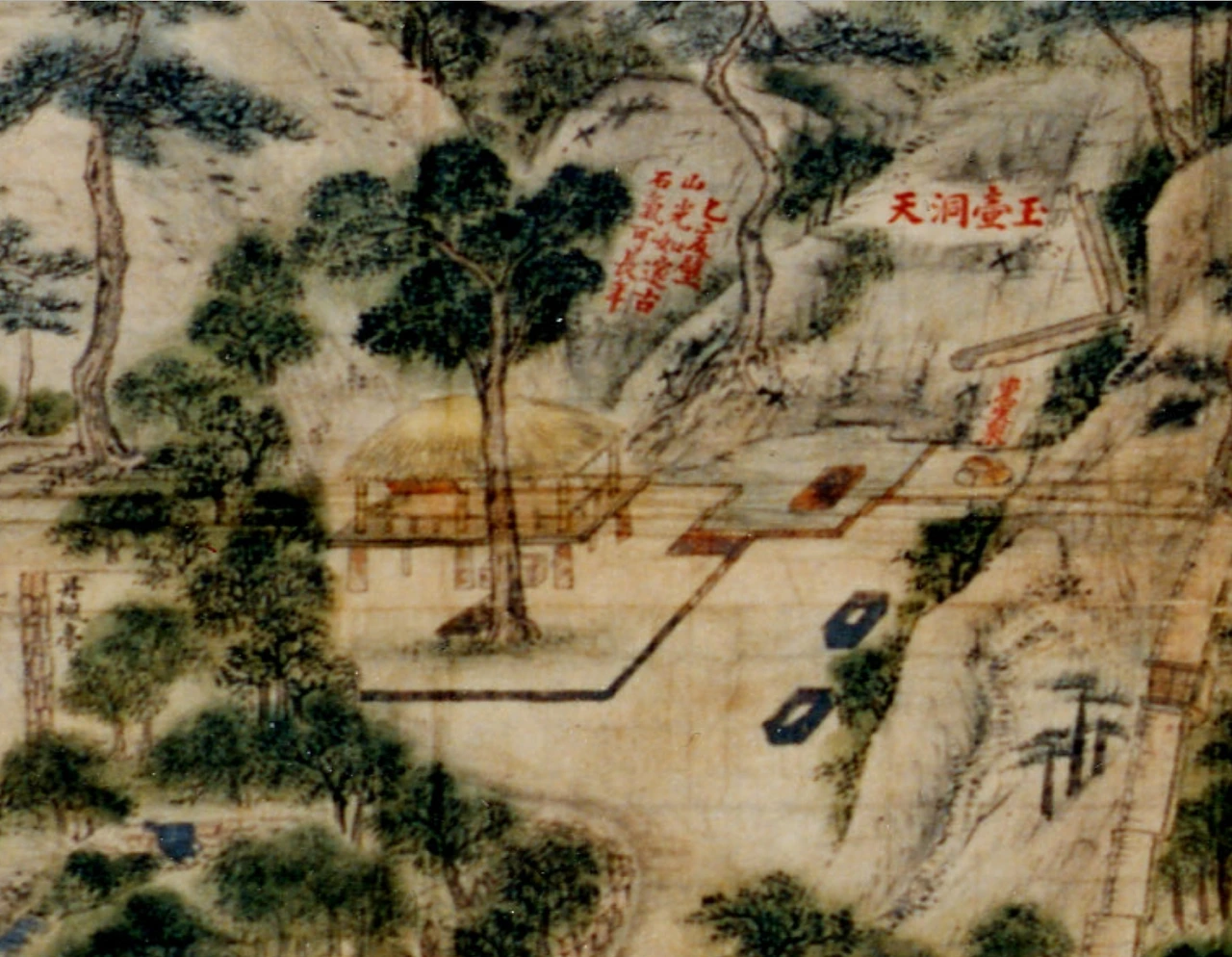 풍고를 공간으로 풀어낸 별원의 또 다른 이름은 옥호동천玉壺洞天이다. 옥으로 만든 작은 호리병이라는 옥호의 의미를 누군가는 옥병 안의 얼음처럼 깨끗한 마음이라 하는 사람도 있고, 호리병 안의 신선의 세계로 표현하는 사람도 있다. 분명한 점은 현실의 세상과는 동떨어진 또 다른 세상을 만들고자 했던 것 같다. 옥호동천은 살림집과 분리된 안쪽 깊숙한 곳에 있다. 옥호동천으로 가는 길을 일부러 좁게 만들고 단풍나무 숲과 수십 개의 괴석들로 꾸며 어둡고 기이한 느낌을 주었다. 별원 입구를 지나면 넓고 시원한 공간이 나온다. 큰 거석 사이로 대나무 통을 반으로 잘라 물을 끌어온 가조의 시원한 물줄기, 은행나무 그늘 아래 큰 대나무 정자에 앉아 경화세족들이 보냈던 신선 같은 시간은 현실과 동떨어진 세계였다.