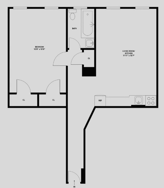 그러면 이곳의 집들은 어떨까요? 인우드의 최저가 수준(약 $1,500)의 원베드 아파트를 하나 보겠습니다. 4861 Broadway #5U 에 위치한 매물로, $1,586 달러로 올라와있네요.