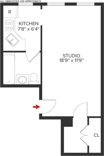 고풍스러운 난로도 있구요. 구조는 이상하지만 욕실도 부엌도 나름 깔끔하게 잘 설비가 돼 있습니다. 화장실이 급하게 집에 들어왔을 때 달려가야 할 거리가 심하게 멀어 보인다는 점 외에는 앞의 우거진 나무도 큼지막한 옷장도 마음에 듭니다. 평면도상 비어 있는 왼쪽 아래 공간은 건물의 계단이 있어 활용하기 어려운 공간일겁니다. 보통 브라운스톤 건물의 중간 층 호수는 저렇게 계단이 지나가는 빈 공간이 생기게 됩니다.