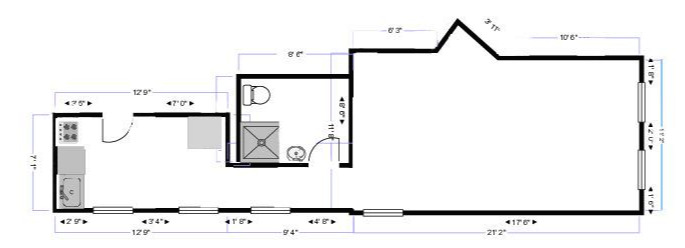 월세는 1,595 달러, 약 13평 (41.8064 제곱미터)