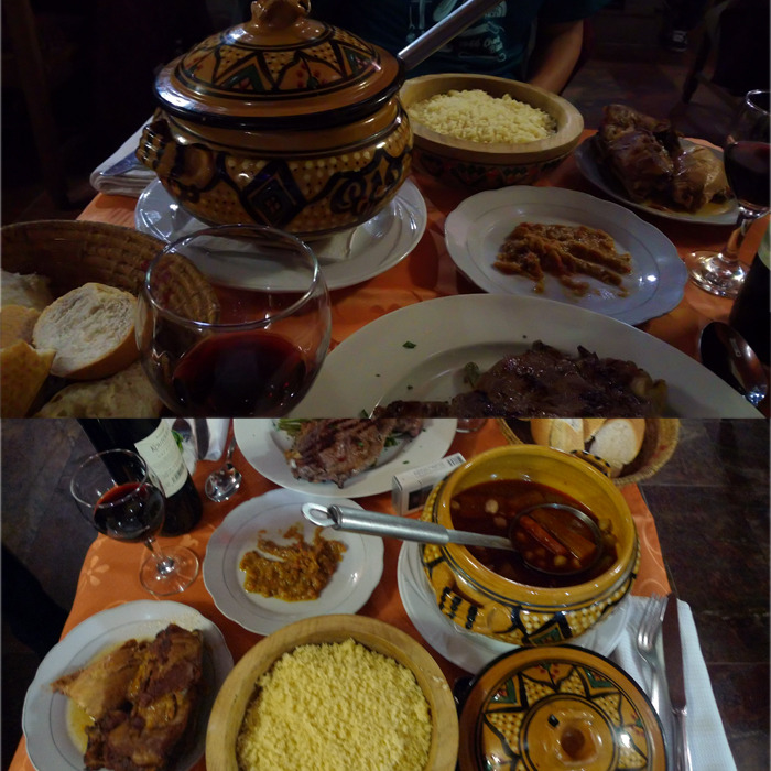 북아프리카 전통음식 쿠스쿠스. 좁쌀밥에 고기와 각종 야채를 푹 끓인 스튜를 말아 먹는다. 알제리의 피에누아르들에 의해 유럽의 인기메뉴가 되었다고. 양고기쿠스쿠스를 시켰더니 스튜 속에 커다란 양갈비가! 좁쌀이 뱃속에서 불어나므로 과식은 금물!