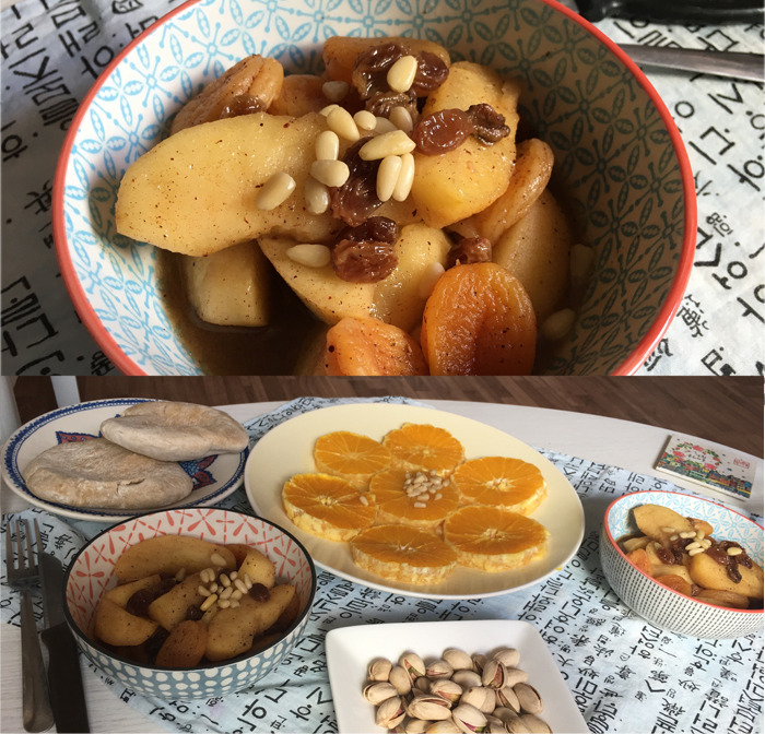 한국의 알제리 여인 페리엘이 만든 견과일조림과 오렌지 구이. 말린 과일조림은 라마단 금식 후 첫 식사의 에피타이저라고 한다.