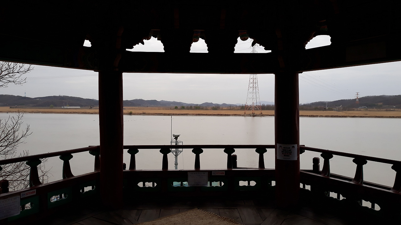 반구정의 전망은 기대이상이었다. 확 터진 임진강의 풍광. 평화누리길을 따라 서해와 조강, 한강을 거쳐 임진강을 마주하게 되었다는 성취감도 잠시, 자연 그대로의 자연과 군사적 긴장으로 인한 적막감의 공존이 불러일으키는 묘한 감흥에 빠져들었다. 길게 늘어선 철조망을 따라 옛 모양 그대로 흐르는 누런 물줄기가 좋았고. 강 건너 군사시설을 품고 자연 상태로 방치된 민간인 통제구역의 고요함도 좋았다. 스산한 비무장지대. 아직 봄빛은 아니지만 무른 땅 속에서 봄이 스멀스멀 피어오르고 있었다.