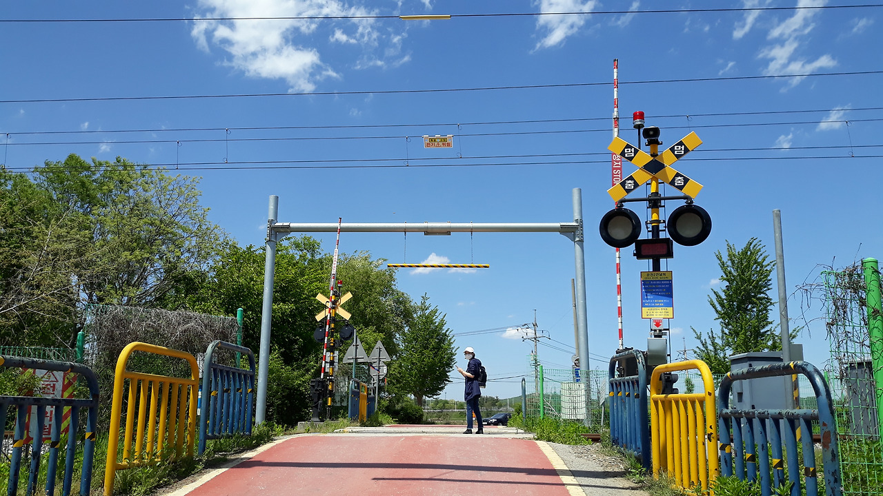 그 길 끝에 반가운 철길 건멀목이 우리를 기다리고 있다. 경의선 철길. 분주히 열차가 오갔으면 좋으련만 건널목 가운데 서서 철길을 한참 바라보아도 열차는 오지 않는다. 서울-신의주와 서울-부산은 거리가 거의 같다. 경의선은 개성 평양 신의주에서 만주로 넘어가 중국 대륙으로, 동해선은 원산 청진 나진 회령에서 블라디보스톡으로 넘어가 유럽으로 이어진다.