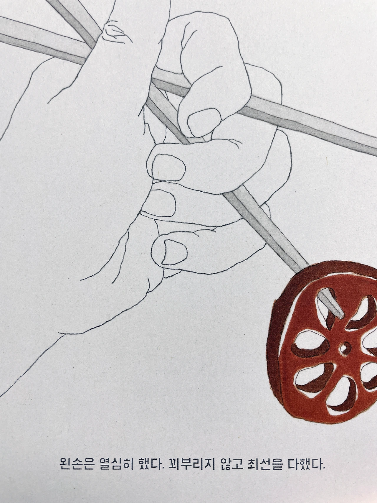 『왼손에게』를 쓰고 그린 한지원 작가는 왼손과 오른손을 빗대어 누구나 공감할 수 있는 모든 관계에 대해 이야기한다. 늘 옆에 있지만, 가깝기에 쉽게 상처를 주고 오해가 생길 수밖에 없는 수많은 관계들 말이다. 나는 오른손과 왼손의 이야기에서 부부의 관계가 보였다.