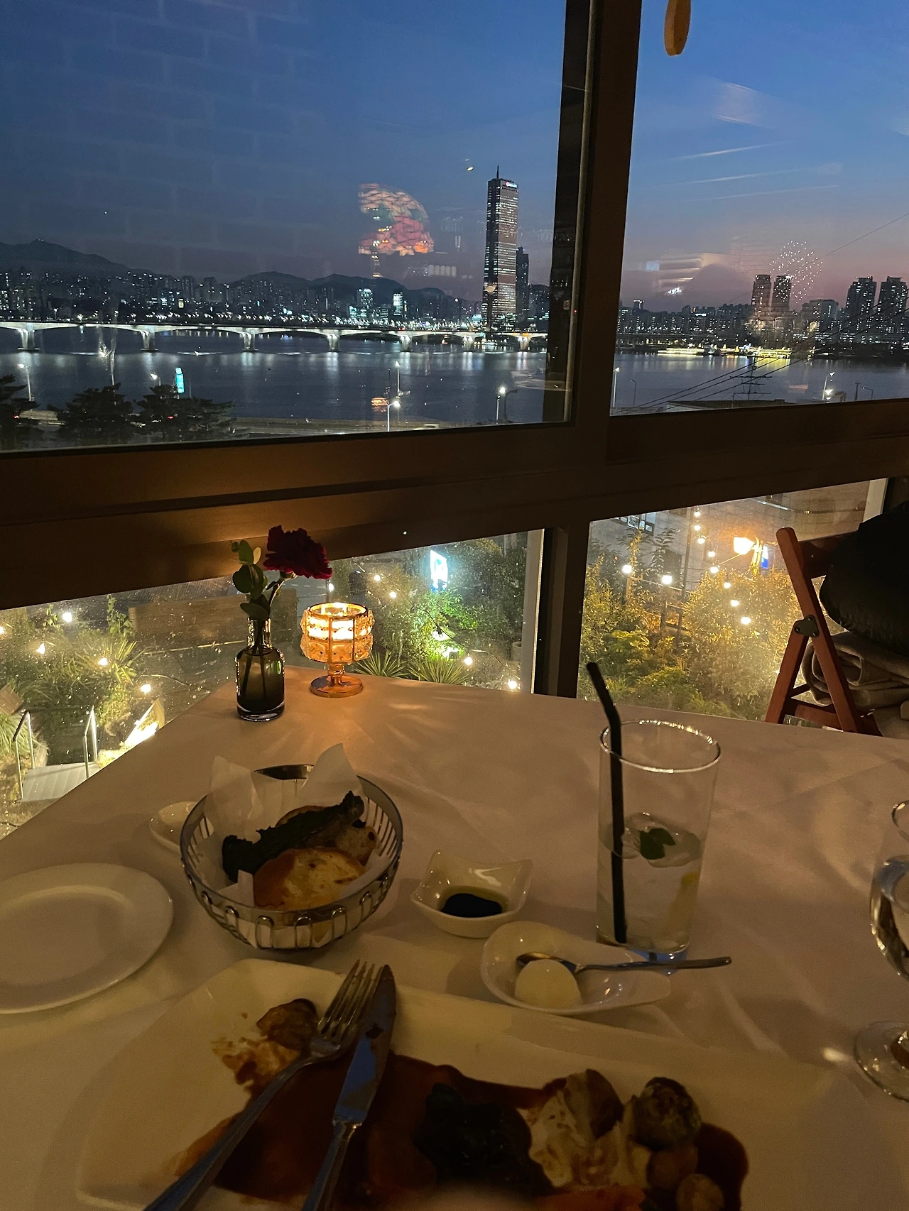 시시각각 변하는 한강을 바라보며 아주 천~~~~~~~천히 음식을 먹었다.