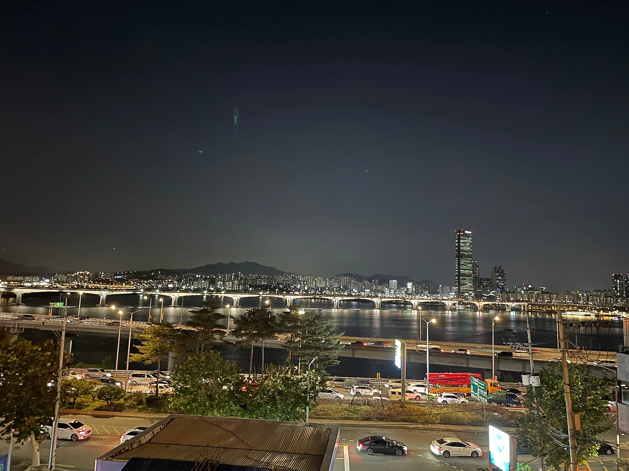 식사를 마치고 다시 레스토랑 정원으로 나왔다. 밝았던 서울의 풍경은 이렇게 반짝반짝 변해 있었다.