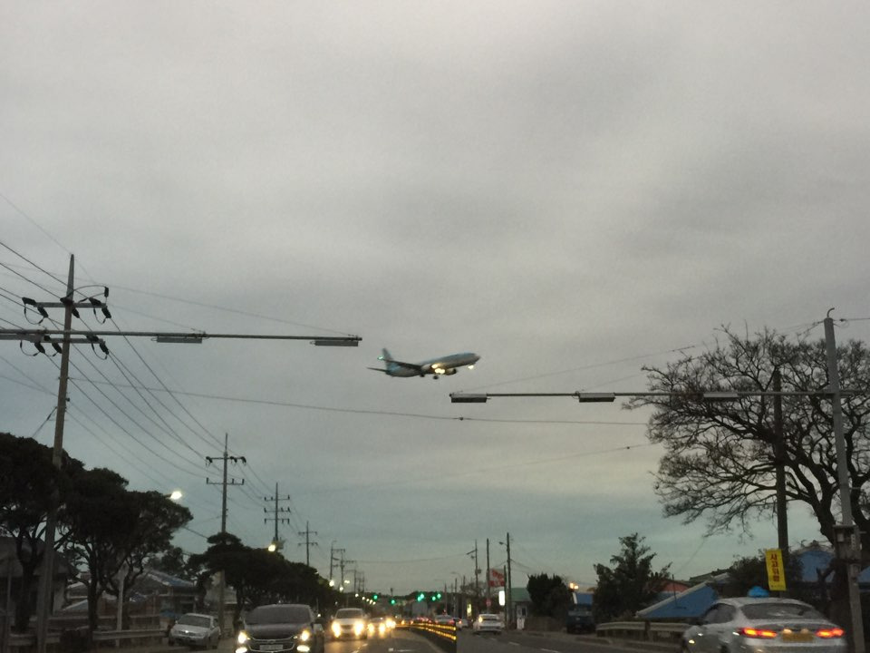 지금까지는 '현실론'이었습니다. 사실 전 매우 만족해요(이제와서?). 현재 집이 제주공항 활주로 근처에 있어서 하루에도 몇번이나 아파트 만한 비행기가 머리 위로 지나가는 것을 봅니다. 대학생때까지 비행기라는 것을 저멀리 비행기 구름으로 본 것이 전부인 촌놈에게 비행기의 이륙, 착륙 장면은 정말이지 탄성을 자아내는 것이었습니다. 지금도 볼 때마다 신기합니다. 질리지 않아요. 시끄럽지 않냐고 다들 걱정하는데요. 물론 창문 열어두면 시끄러워요. 저에겐 그것보단 신기한게 더 크답니다. 그리고 여름에는 이호동, 도두동, 용담동 등에 거주하는 주민들에게 '공항소음방지법'에 따른 냉방전기료 지원을 해줍니다. 작년에는 7~9월 세달치를 주었고, 올해(2018년)부터는 6~9월까지 넉달치 전기료를 지원해 준다고 해요(한달 5만원). 여름 보너스.