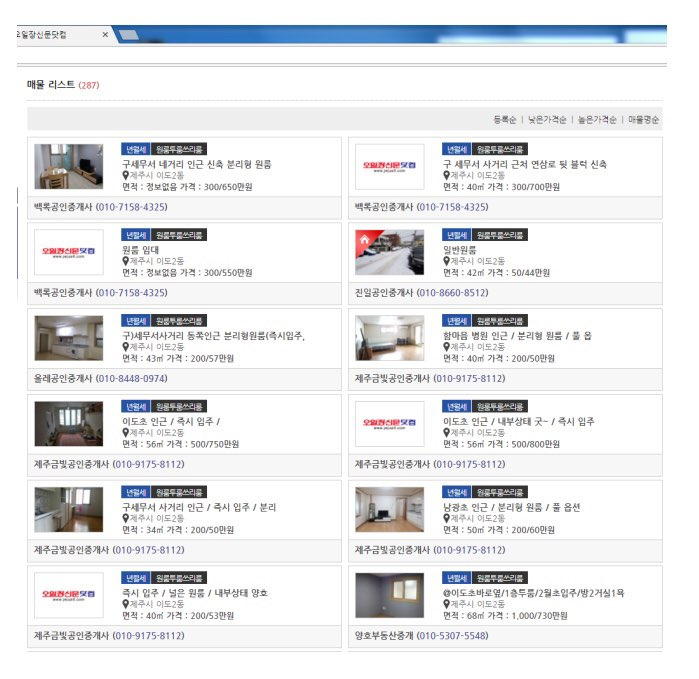 육지의 '벼룩시장' 같은 정보지와 비슷합니다. 육지와 같이 동일한 매물이 오일장신문 뿐만 아니라 각종 부동산 카페, 커뮤니티 등에 중복으로 매물이 게재되어 있기도 합니다. 2017년~2018년 기준으로 제주 시내 원룸의 월세는 대충 60만원 내외인 것 같아요. 그런데 위 캡처 사진을 보면 특이한 점이 있죠? 예를 들어 왼쪽 상단 첫번째 매물의 '가격' 부분을 보면 '300/650만원'으로 되어있습니다.