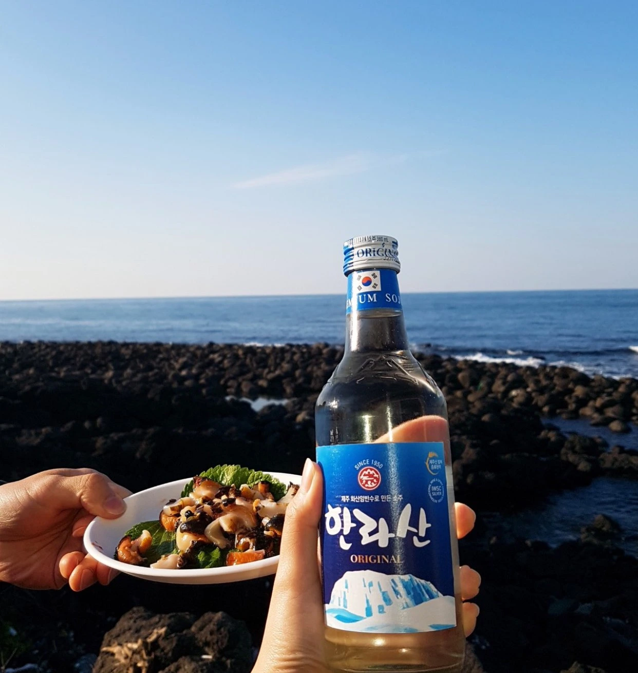 솔직히 출근할 때는 시간에 쫓기니 불편합니다. 하지만 퇴근할 때는 시내에 사는 사람들이 느끼지 못하는 것을 향유할 수 있습니다. 애월 바다 쪽으로 떨어지는 낙조를 보면서 퇴근할 수 있다는 점이죠. 그 사이로 비행기가 내려오는 것까지 더하면 이국적인 운치는 배가 됩니다. 저녁에는 돗자리랑 맥주를 사들고 걸어서 10분만 가면 말 등대가 보이는 이호테우 해변에서 치맥도 할 수 있습니다. 물론 평일에도요. 애월은 또 어떻고요. 주말 오전에는 집 근처 해안 노천탕이 있는 사우나에서 목욕을 하고, 그 옆 해녀의 집에 가서 전복죽이랑 뿔소라, 그리고 '하얀거'도 먹고 오곤 합니다. 목욕이든 전북죽이든 눈 앞은 물론 바다죠. 이게 다 차로 15분 거리.