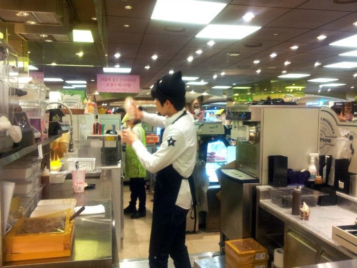 소프트리 아이스크림은 '죠스바'처럼 공장에서 찍어낸 공산품이 아니라 매장 직원이 즉석에서 주문을 받고 만들어 판매합니다(위아래 사진 참조). 그 제조, 판매방식의 특성상 아이스크림의 높이, 벌집채꿀의 크기, 아이스크림의 모양 등이 개별 제품별로 차이가 난다고 보았습니다. 일정한 상품형태를 가지고 있다고 보기 힘들다는 것이지요. 설령 '휘감아 올린 소프트 아이스크림 위에 입체 또는 직육면체 모양의 벌집채꿀을 얹은 형태'라는 공통점이 있다고 하여도 이는 추상적 특징에 불과하고 아이디어가 공통된 것에 불과하다고 본 것입니다.