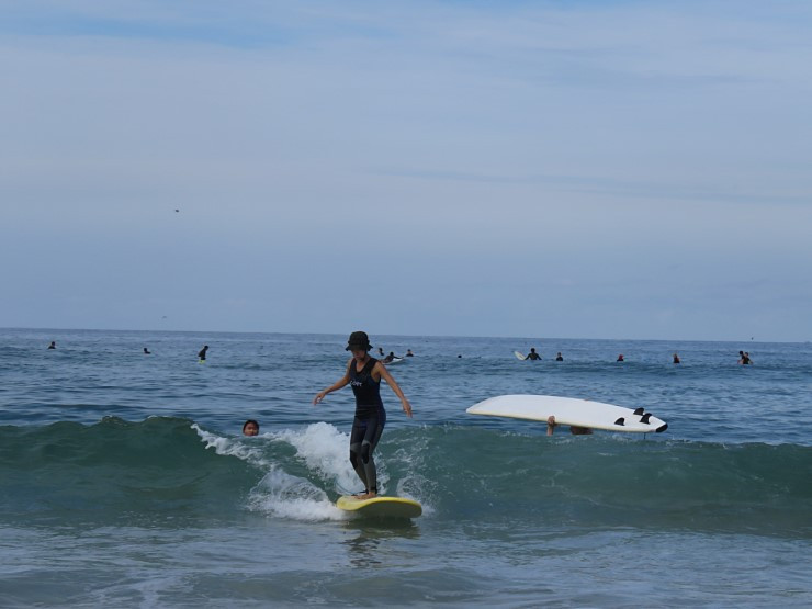처음에는 렌탈 스폰지 보드로 입문하게 됩니다. 다루기가 부담이 없고 누군가와 부딪쳐도 비교적 덜 위험하죠. 그리고 부력이 매우 좋아서 파도도 잘 잡힐 뿐아니라 테이크 오프(보드에서 일어나기)해서 안정적으로 직진 라이딩이 가능합니다. 하드 보드를 타다가 스폰지보드를 타면 마치 통통배를 타는 느낌이랄까요.