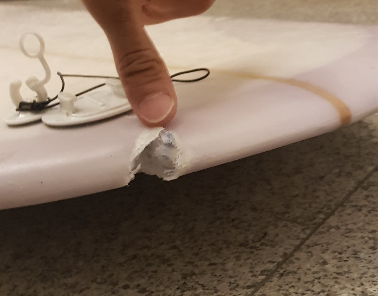 저는 하드보드를 산 날부터 딩을 냈습니다. 사장님이 조심하라고 제게 신신당부를 했지만 스폰지보드만 다뤘던 저에게 그런 감이 아예 없었죠. 구매한 보드를 옮기려고 들자마자 기둥 모서리에 테일을 틱!하고 아주 살짝 부딪쳤는데, 바로 깨지더군요. 첫 입수하기도 전에 바로 수리들어갔습니다. 피눈물.