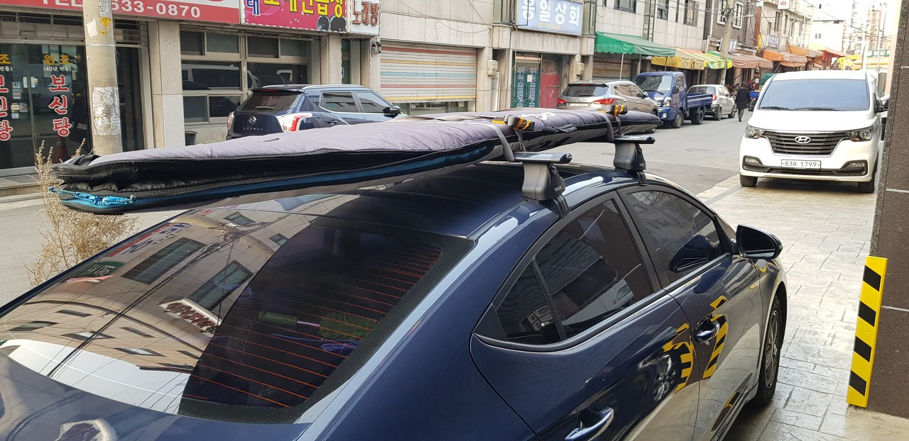 다른 하나는 차에 랙을 올려서 보드를 가지고 다니는 것입니다. 이 방법은 1. 차도 있어야 하고 2. 루프랙도 있어야 하고 3. 집에 보드 보관할 공간도 있어야 하고 4. '부지런함'도 있어야 합니다. 그러니 초보자들이 하기에 쉬운 방법은 아니죠.