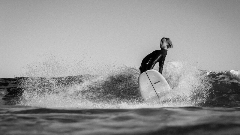 반면, 클래식 롱보드는 안정적이고 여유로운 라이딩에 초점이 맞춰져 있습니다. 클래식은 스타일은 여유로운 로깅(logging - 통나무 위를 걷는다는 느낌으로 보드 위를 걷는 것)과 노즈라이딩이(위 사진과 같이 보드 앞부분인 노즈에서 라이딩을 하는 것) 핵심입니다. 그래서 하이퍼포먼스 롱보드에 비해 무게가 무겁고, 안정성을 위해서 핀도 거대한 싱글핀을 낍니다. 그래서 클래식 롱보드를 싱글핀 서핑보드라고도 합니다.