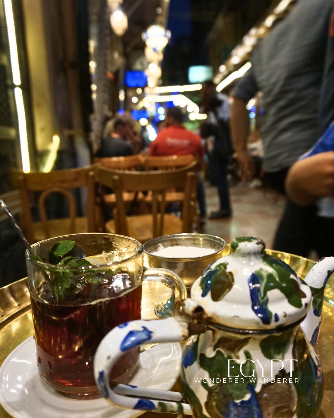 소설이나 영화의 한 장면 같은 카이로의 이 오래된 카페에 앉아 골목을 오가는 다양한 사람들을 구경하다 보면 시간이 금방 지나간다. 보통 사람들은 설탕을 가득 넣은 홍차(현지에서는 ‘샤이’라고 부름)에 신선한 민트 잎을 띄운 차를 마시거나, 바닥에 커피가루가 가라앉아 있는 진한 아랍식 커피와 함께 다양한 향의 물 담배를 즐긴다. 며칠을 같은 자리에 앉아서 물 담배 연기를 연신 뿜어내는 듯한 배도 나이도 지긋하신 동네 아저씨들, ‘타울레’(Tawleh, 백가몬이라고도 부르는 보드게임의 일종)’에 빠져 즐겁게 떠드는 젊은이들, 엘 피샤위의 아랍 전통 목가구와 조명, 거울을 배경 삼아 사진을 찍는 여행객들. 카페에는 손님뿐만 아니라 손님들의 이목을 끌려는 사람들도 많이 찾는다. 각종 장신구와 파피루스를 팔러 다니는 잡상인, 헤나 사진을 보여주며 가격을 흥정하는 여성들. 거리의 악사들은 어느새 카페에 앉은 사람들과 뒤섞여 각계각층의 사람들과 흥겨운 리듬을 만들어낸다.