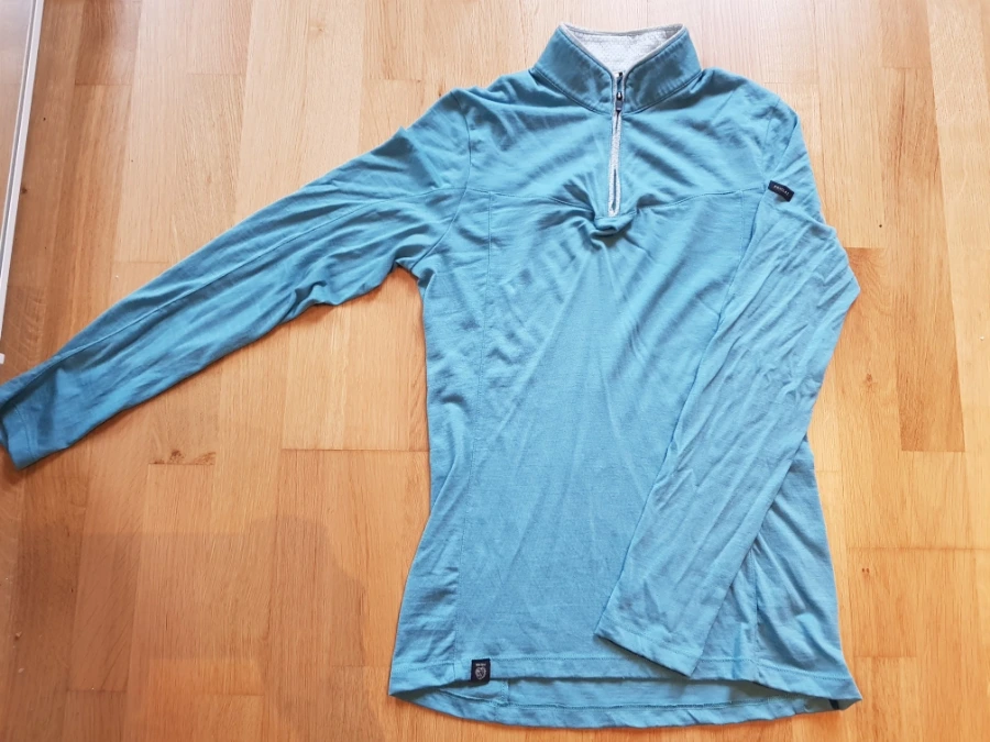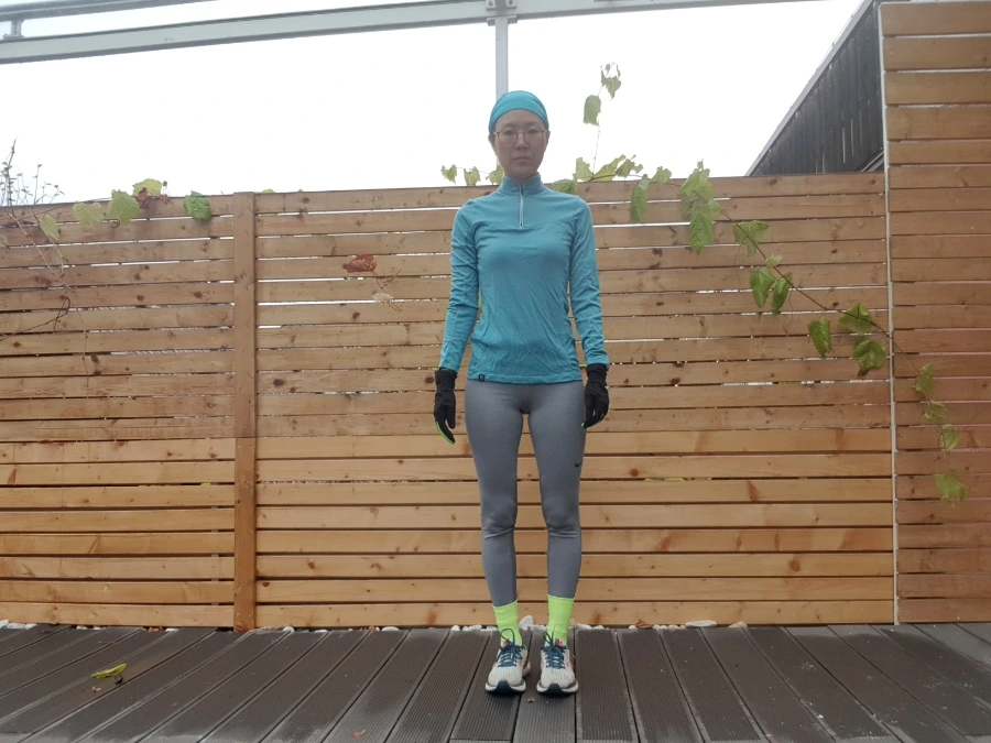 6. 조깅 셔츠: 터키색이 고와서 산 양털 등산용 티셔츠다. 목이 차이나 컬러여서 따뜻하다. 엉덩이를 거의 덮는 기장으로 기모로 된 조깅 티셔츠 입기 전, 10도 이상의 기온에서 입기 적합하다. 혹은 바람막이 재킷 안에 입는다.