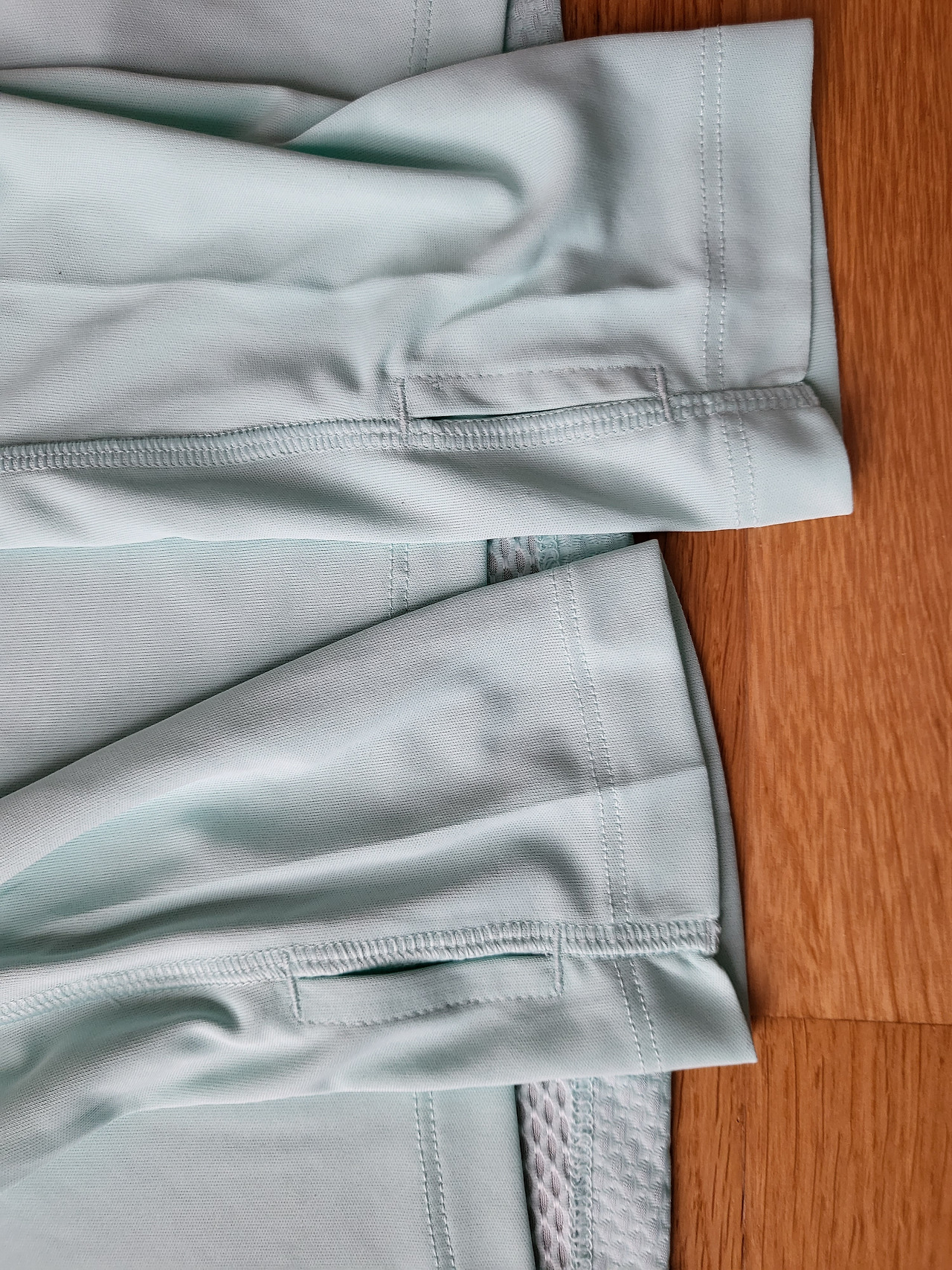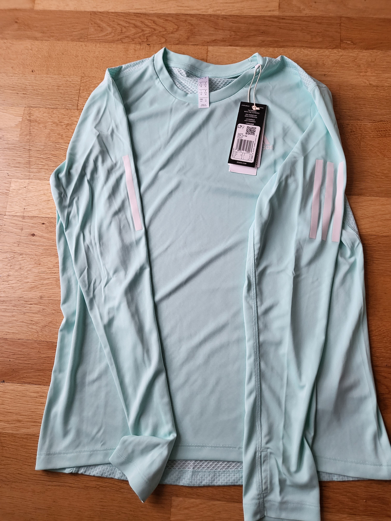 이런 긴 팔 통기성 셔츠가 쓰임이 젤 좋다. 나이키도 좋지만, 이런 셔츠는 아디다스를 선호한다. 가을과 봄, 여름까지 찬바람이나 그늘에서 달릴 때 보온이 된다. 같은 디자인으로 핑크색이 있는데, 만족해서 같은 디자인을 샀다. 민트색 셔코기 러닝화에 딱 맞는 색이다. 등에 통기가 잘 되는 소재로 바뀌었다. 역시 엄지를 끼울 수 있고, 디자인이 내 체형에 잘 맞아서 마음에 든다.