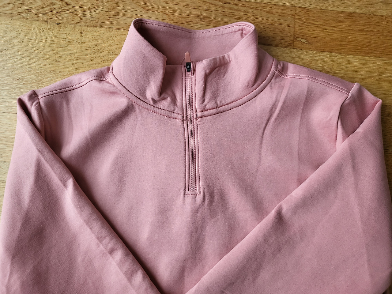 차이나 옷처럼 목이 길게 올라와야 한다. 그래야 목으로 들어오는 찬 바람을 막을 수 있다. 아무리 체온이 올라가도 겨울에는 달리면서 이 지퍼를 여는 일이 없다. 땀이 바람에 씻기면서 감기에 걸릴 수 있다. 이런 셔츠에 넥워머를 두르면 한겨울에도 충분하다.