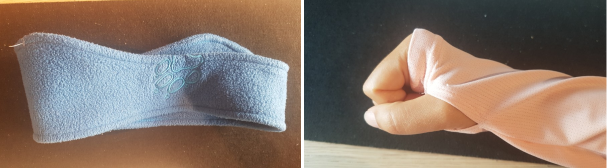 그리고 여름 헤어밴드는 아무래도 땀이 닿으면 바로 온도가 내려가기 때문에 환절기에는 적합하지 않아요. 지금은 플리스 소재의 헤어밴드가 따뜻하고 좋아요.