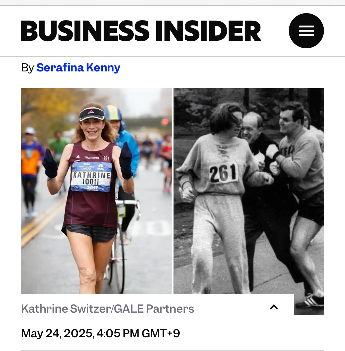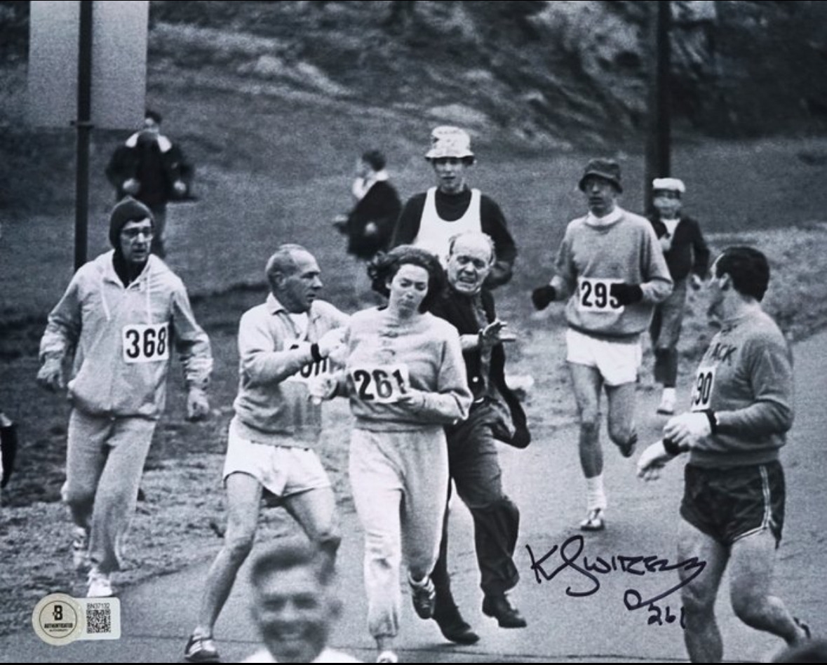 1960년대 미국, 특히 보스턴 마라톤 조직 위원회는 여성의 마라톤 참가를 금지하고 있었다. 당시 의학계에서는 여성이 800m 이상을 달리면 자궁이 내려앉는다는 주장이 믿어지는 시대였다고 한다. 당시 캐서린은 시러큐스 대학에서 체육을 전공 중이었는데, 코치가 "여성은 마라톤을 뛸 수 없다"는 말에 강한 반발심을 느껴 참가를 결심하게 되었다. 여성이라는 것을 밝히지 않고 이니셜 K.V. Switzer라는 이름으로 참가를 하게 되어 보스턴 마라톤 조직위도 여성이라는 것을 알지 못하여 등록을 할 수 있었다. 달리는 도중, 대회 조직위원인 존 세물 존슨이 그녀를 보고 격분하여 코스에 뛰어들어 그녀를 밀어내려 하였으나 그녀의 남자친구(미식축구 선수)가 밀쳐내어 그녀는 계속 달릴 수가 있었다. 결국 그녀는 4시간 20분에 완주할 수 있었으나, 남자만 공식 기록이 인정되어 그녀의 기록은 공식적으로는 인정받을 수 없었다.