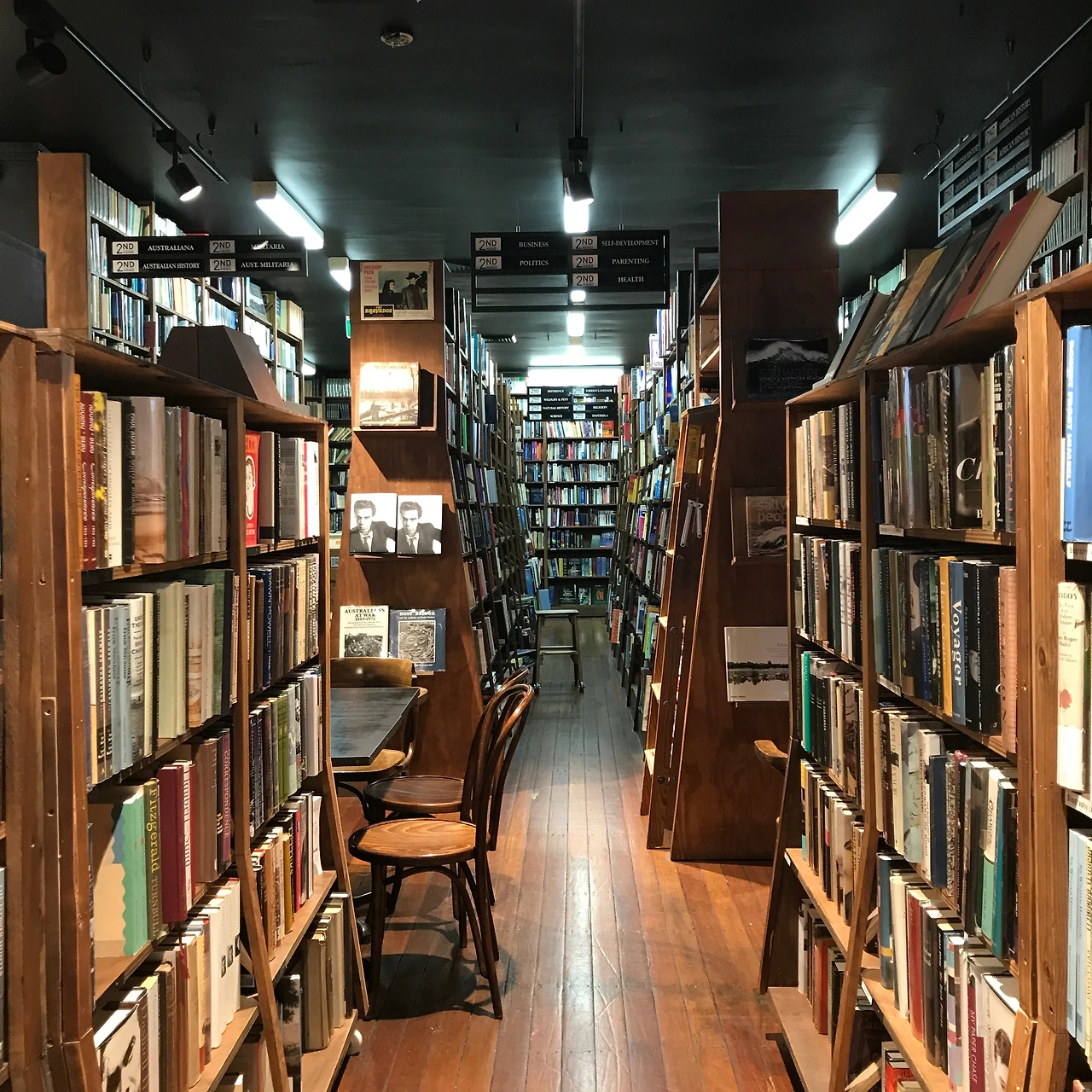 사이좋게 붙어있는 모습을 보니 연남동에 ‘헬로인디북스’와 ‘사슴책방’이 생각났다. 두 서점의 분위기는 확연히 달랐다. 뭐가 달랐느냐 하면 조명부터 달랐다. (:)) 내가 간 길로는 Glee Books가 먼저 보였는데, 호적한 길을 따라 가다 보니 한국이건 호주건 작은 책방이 있는 분위기가 또 닮아있는 것 같았다. 굉장히 조용하고 이런 곳에 책방이 있을까 싶은 길이었는데 나는 왜인지 이런 곳을 알려주는 구글맵에 신뢰성이 높아갔다. 책방의 폐점을 앞둔 시간에 들어가니 책방 사장님 같은 아주머니가 곧 문을 닫는다는 메시지를 주셨다. 걱정 말라는 신호를 보내고 책방을 둘러봤다. 사실 어떤 책방을 가도 내가 읽을 수 있는 책들은 없었다. 그냥 책 냄새나 코로 맡고 눈으로 책들을 둘러보는 것만으로 나에겐 꽤 재미있는 시간이니 그걸로 됐다고 생각한다. 이 책방은 섹션을 나누는 팻말이 특이했다. 표지판으로 나눠놨는데 그게 되게 귀여웠다. 알려주는 방향으로 가 보면 정확하게 원하는 코너에 도달할 수 있다. 책방을 둘러보다 보니 사장님 내외로 보이는 두 분의 시선이 내 동선을 따라 다닌다는 것을 느끼자 제일 상냥한 미소를 띄며 인사를 하고 나왔다. 내가 나오자마자 후다닥 책방을 정리하시고 퇴근하셨다. 가면서 내 욕을 했을 것 같다. 늦게 들어와서 책도 안 샀다고.